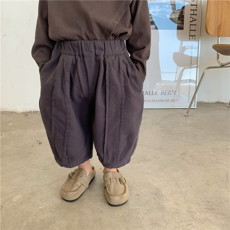 1439C 2022 Spring New Baby Boy's Pants Solid Color Cotton and Linen Straight Cropped Trousers 1-7Year Girl's Loose Leisure Pants|,|
