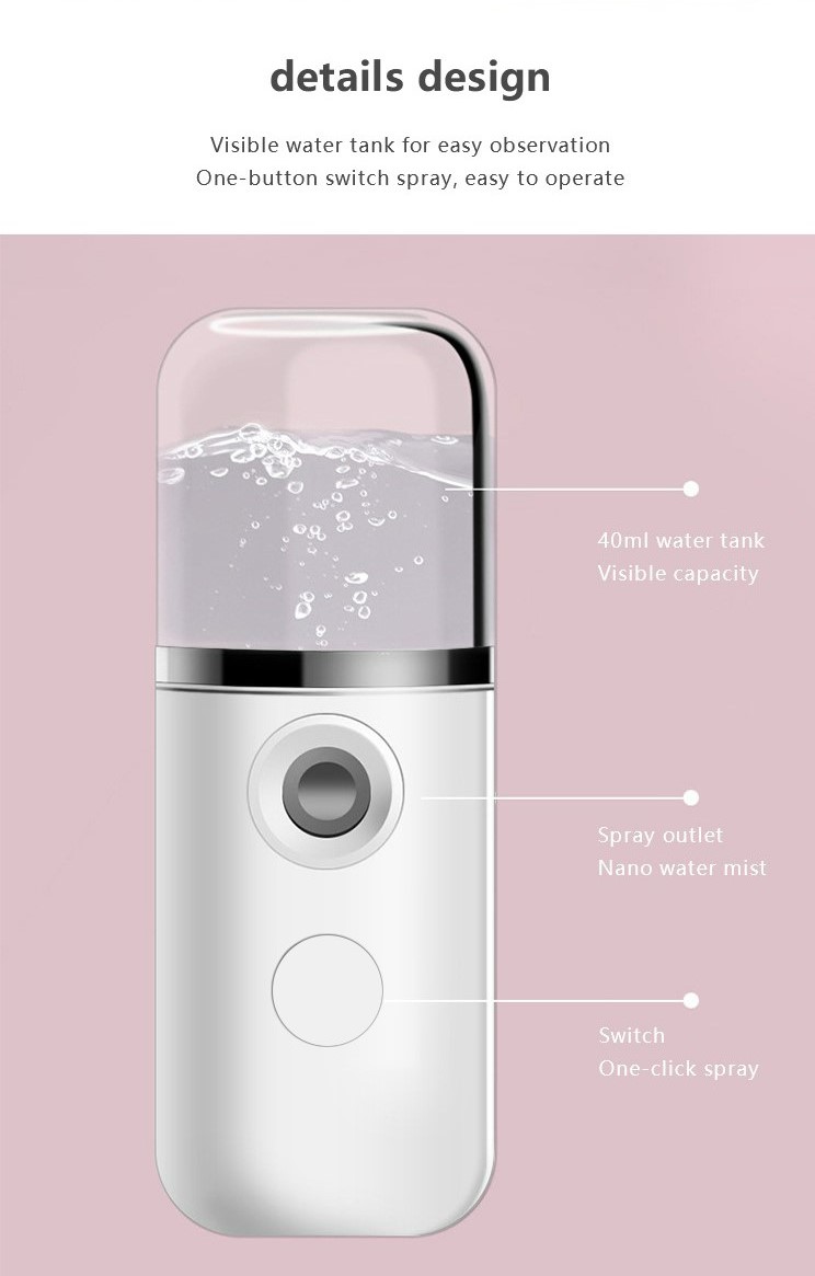 ✅Multi Use: The nano mist spray is battery-operated. Charge it with the included USB. ✅*Tank can be filled with water for personal use or depending on the alcohol you use you can mix water to use as sanitizer! ✅*Fill tank 2 parts water then 1 part alcohol (70% Isopropyl) to create Perfect Mist!✅*Nano Mist Disinfectant is easy and handy to sanitize on the go✅*Nano technology provides more coverage on surfaces, perfect pocket sprayer✅*Hydration & Moisture: Water can also be used for personal use to refresh your skin or combine water with alcohol for disinfectant mist ✅*100% Satisfaction if you select SPREAD PIXIE DUST as seller, please contact us for any issues!✅*Sanitize on the go: Quick and easy sanitizer mist, add 2:1 ratio water/alcohol for perfect mist!