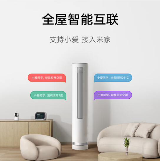 小米3匹 新一级能效 变频冷暖 柔风风感 智能自清洁 客厅圆柱空调立式柜机 KFR-72LW/R1X1