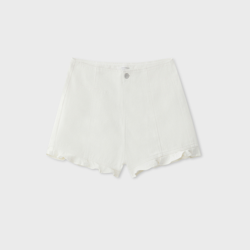 "Showing your charming side with these denim shorts. Detailed with ruffle hem for a subtle girly touch.