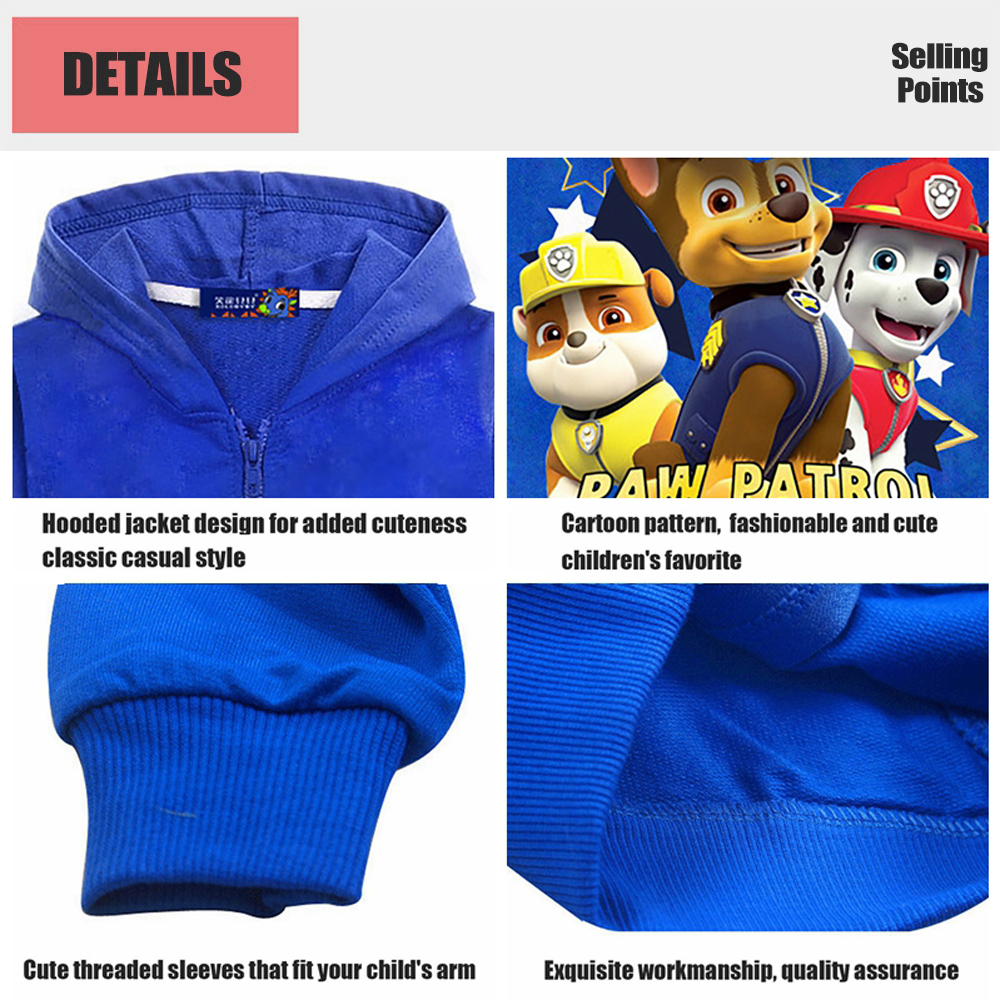 Baby Boy Jacket Coat Hoodies Cartoon Paw Patrol Print Long Sleeved Thin Hooded Coats Jackets 1 to 8 Years|,|