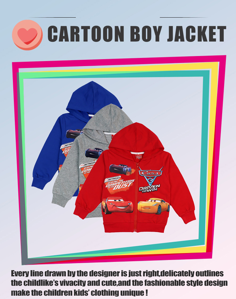Boy Jacket Coat for Kids Cartoon Car Drive to Win Print Zipper Long Sleeve Cotton Hooded Sweater Children Coats Jackets Autumn Winter|,|
