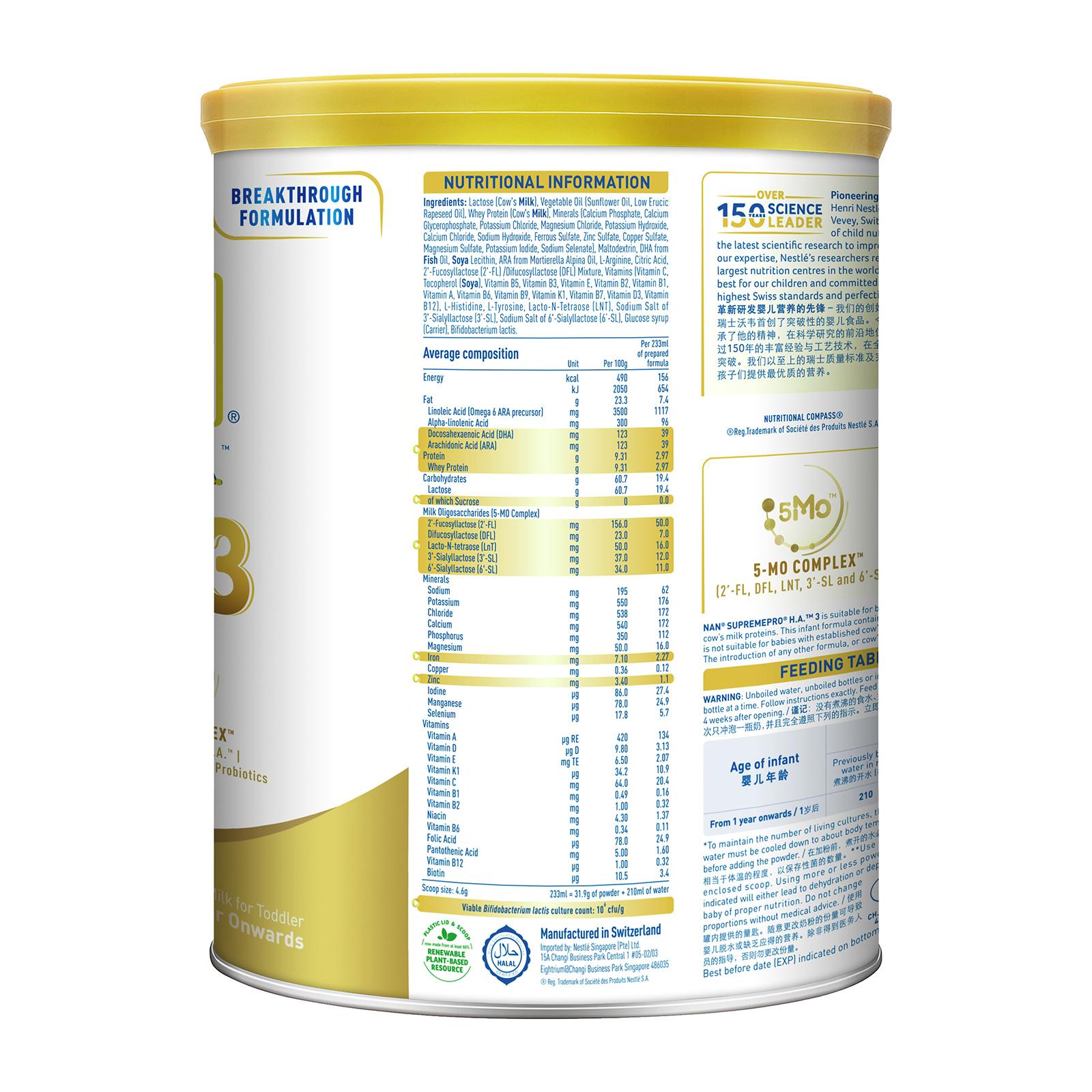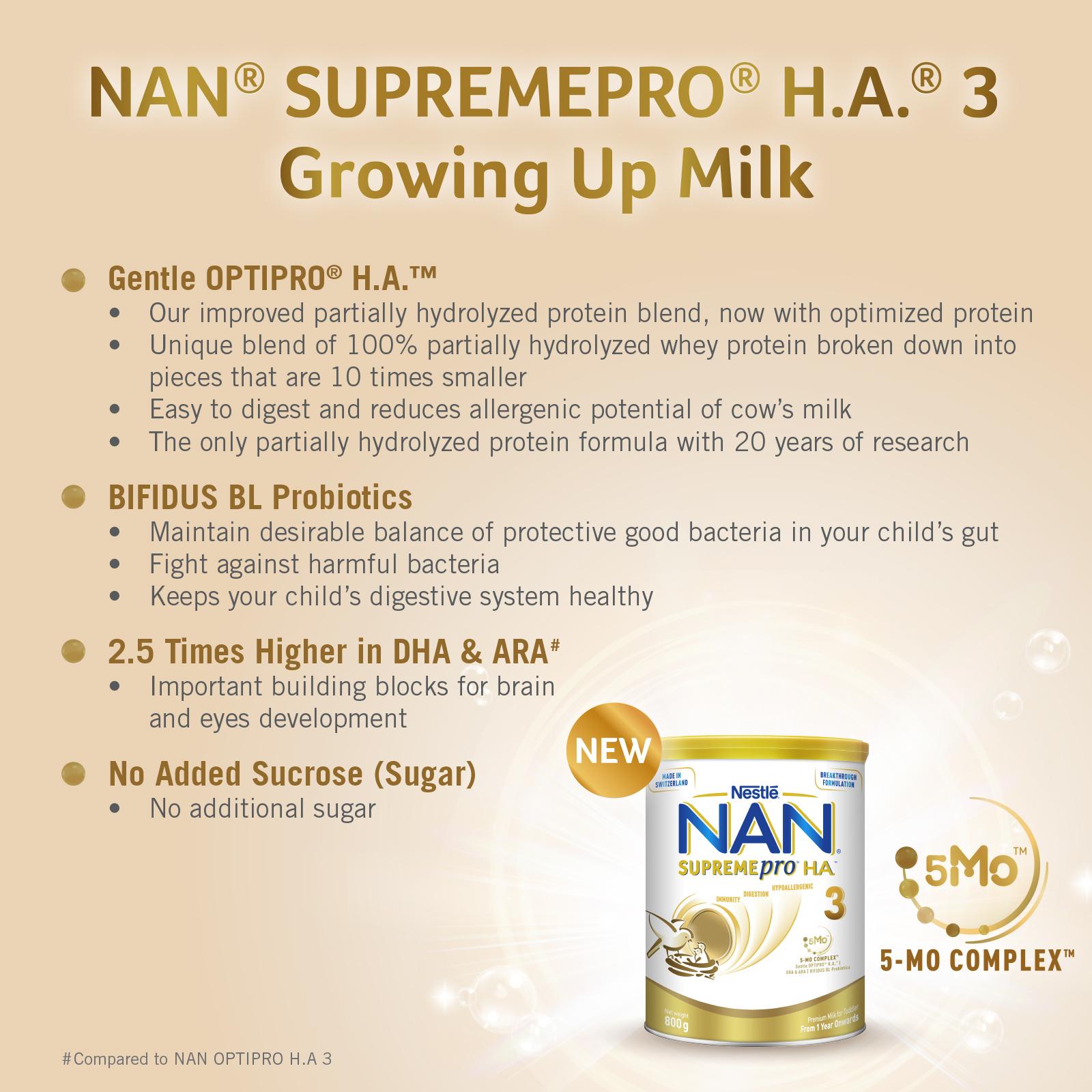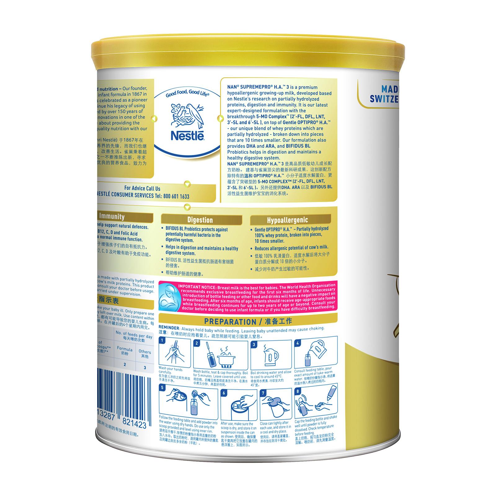 [Carton of 6] Nestle NAN SupremePro H.A. Stage 3 Growing Up Milk 800G - From 12 Months|,|