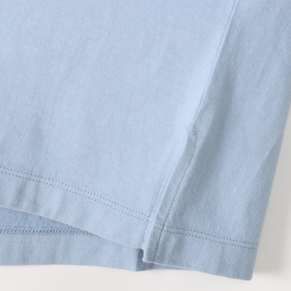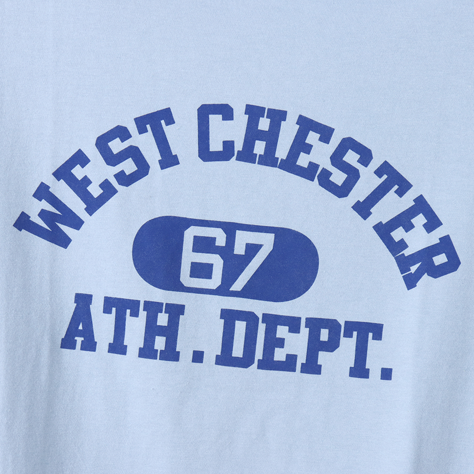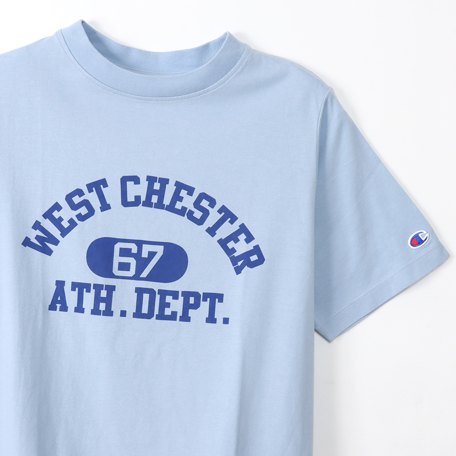 A dry and comfortable short-sleeved T-shirt made from 100% sustainable American cotton "Cotton USA" produced with consideration for the environment. Slits on both sides of the hem. A graphic image of an American city name or college emblem is printed on the front body in a different color for each body color. Due to the product washing process, it has a familiar texture from the beginning of wearing and is difficult to shrink after washing.