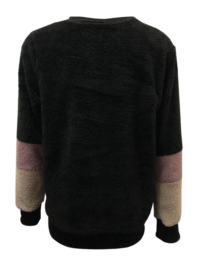 CREW NECK FAUX SHERPA FLEECE PULLOVER|,|