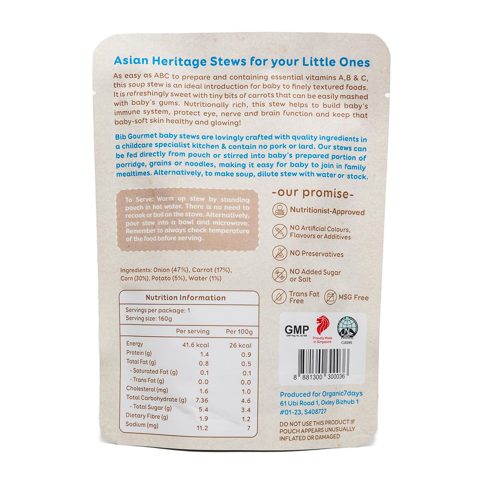Bib Gourmet baby stews are lovingly crafted with quality ingredients in a childcare specialist kitchen & contain no pork or lard. Our stews can be fed directly from pouch or stirred into baby's prepared portion of porridge, grains or noodles, making it easy for baby to join in family mealtimes. Alternatively, to make soup, dilute stew with water or stock.