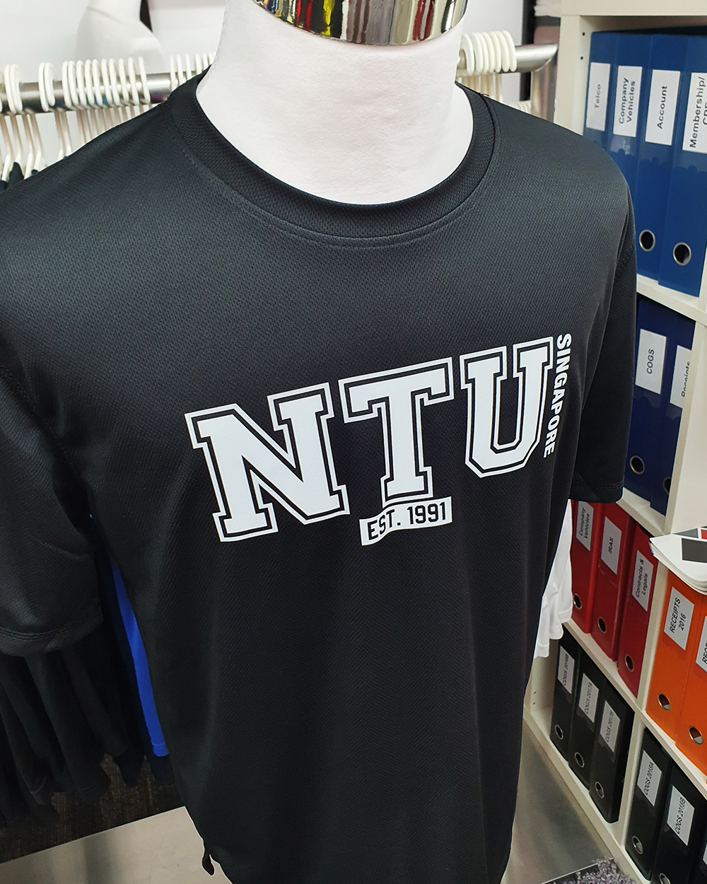 100% Polyester Dri-Fit Nanyang Technological University T-Shirts 100% Cotton Nanyang Technological University T-Shirts Available in Black and White Cotton Available in Black and White Dri-Fit Front Printing 1 Color and Full Color Pls refer to the sizing below:
