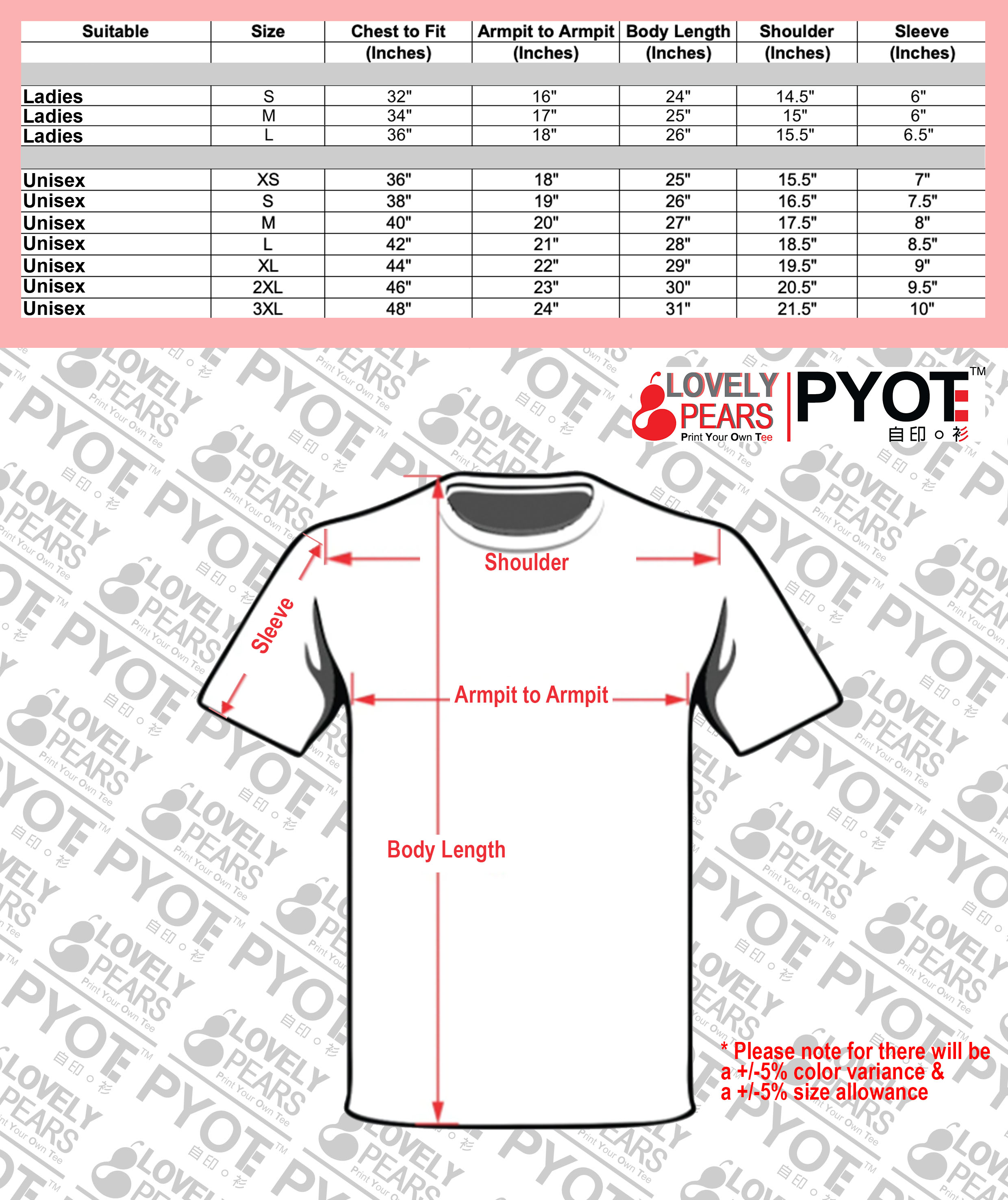 * No exchange can be made as we custom print according to the sizing ordered via E-Commerce Platform. These are Unofficial Designs that are created by Tee Shirts Enthusiast and Students Alumni. We are not associated with any of the educational institutes*