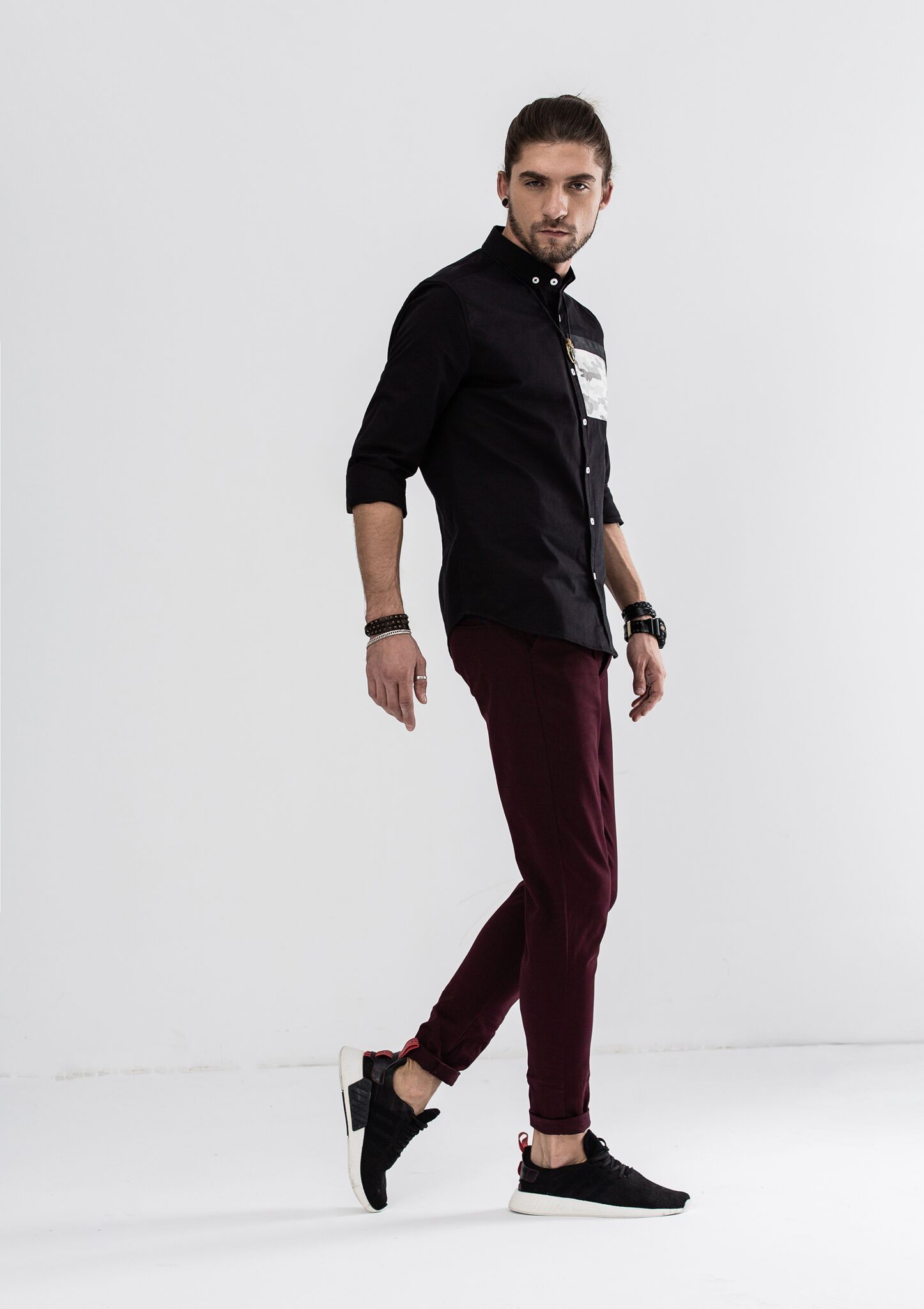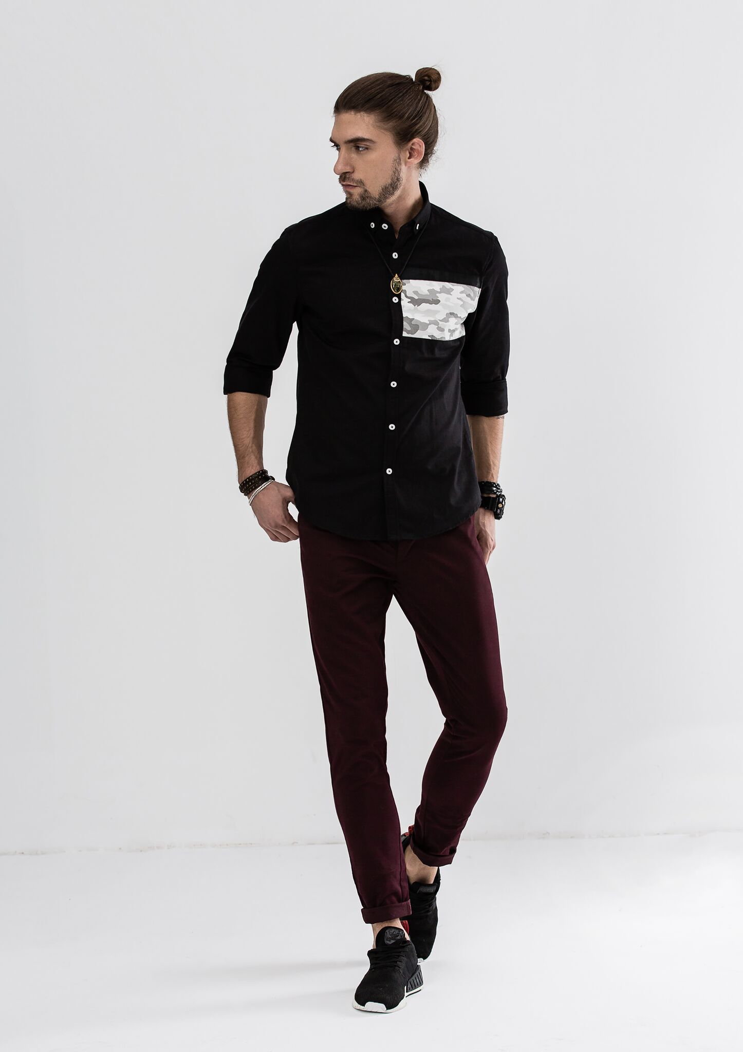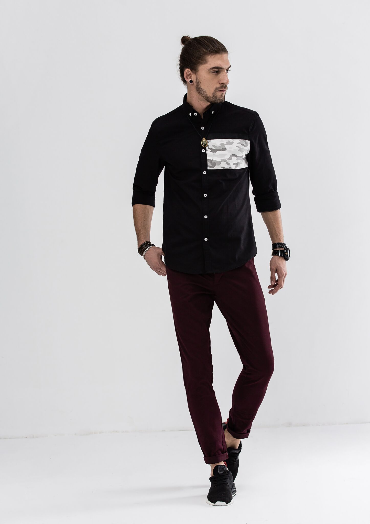 - Simple block color with camouflage detailing for subtle sophistication.