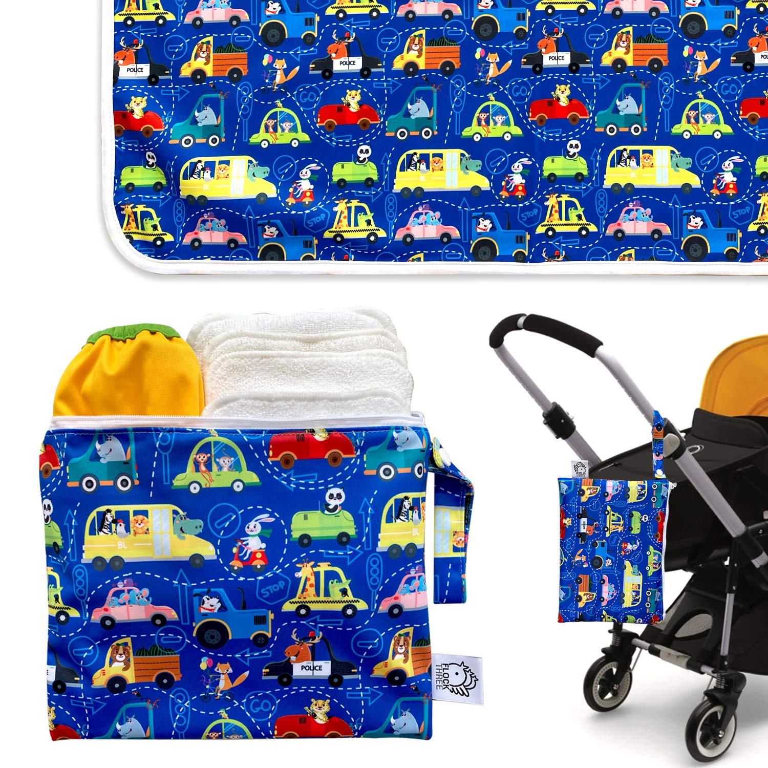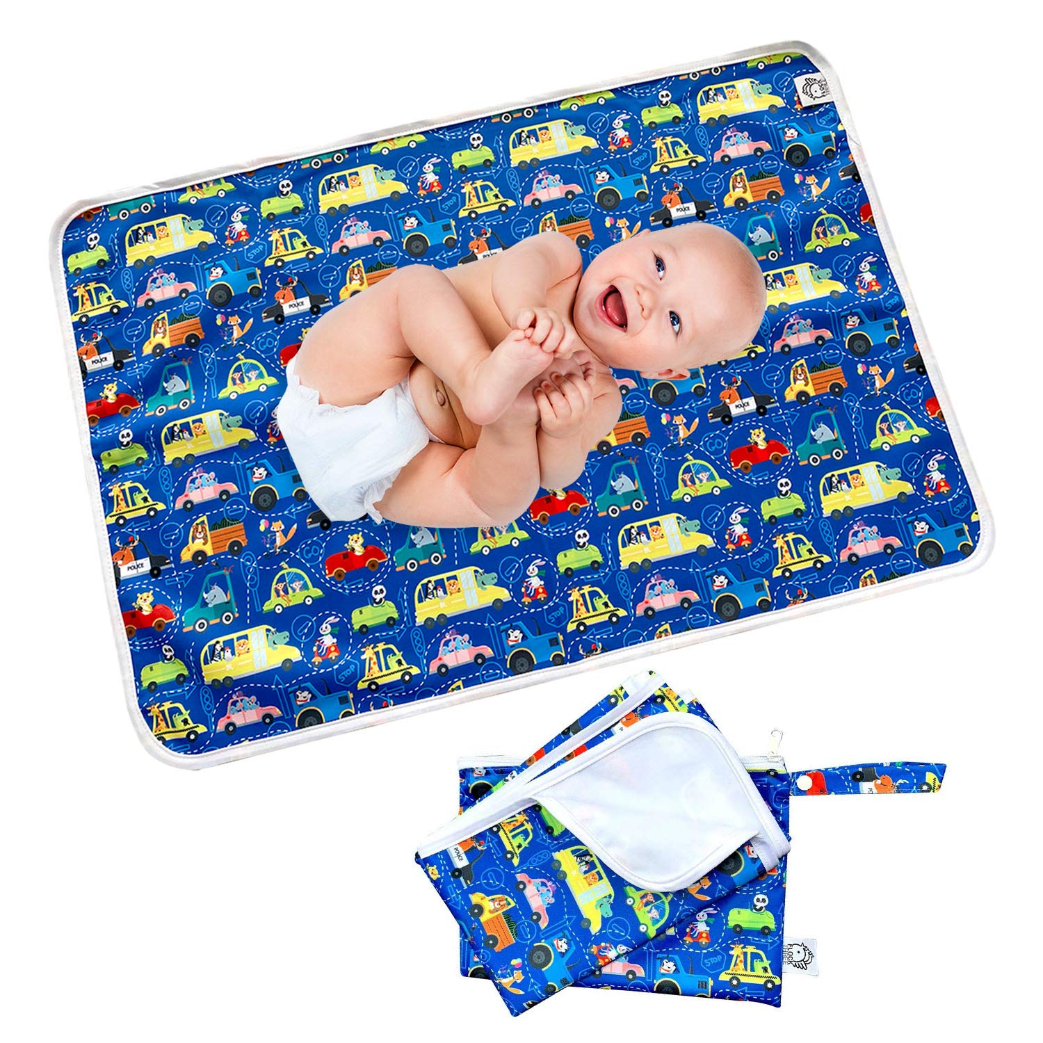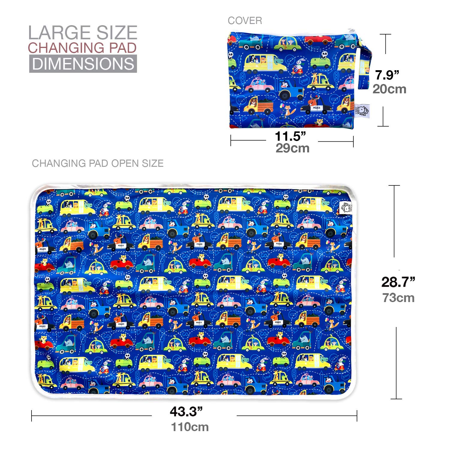 FLOCK THREE Waterproof Baby Diaper Changing Pad 50cm X 73cm with Storage Bag 73cm X 110cm Large Washable Wipeable Reusable Leak Proof Diaper Travel Mat Station Changing Mattress Liner Cribs Bed Cover|
