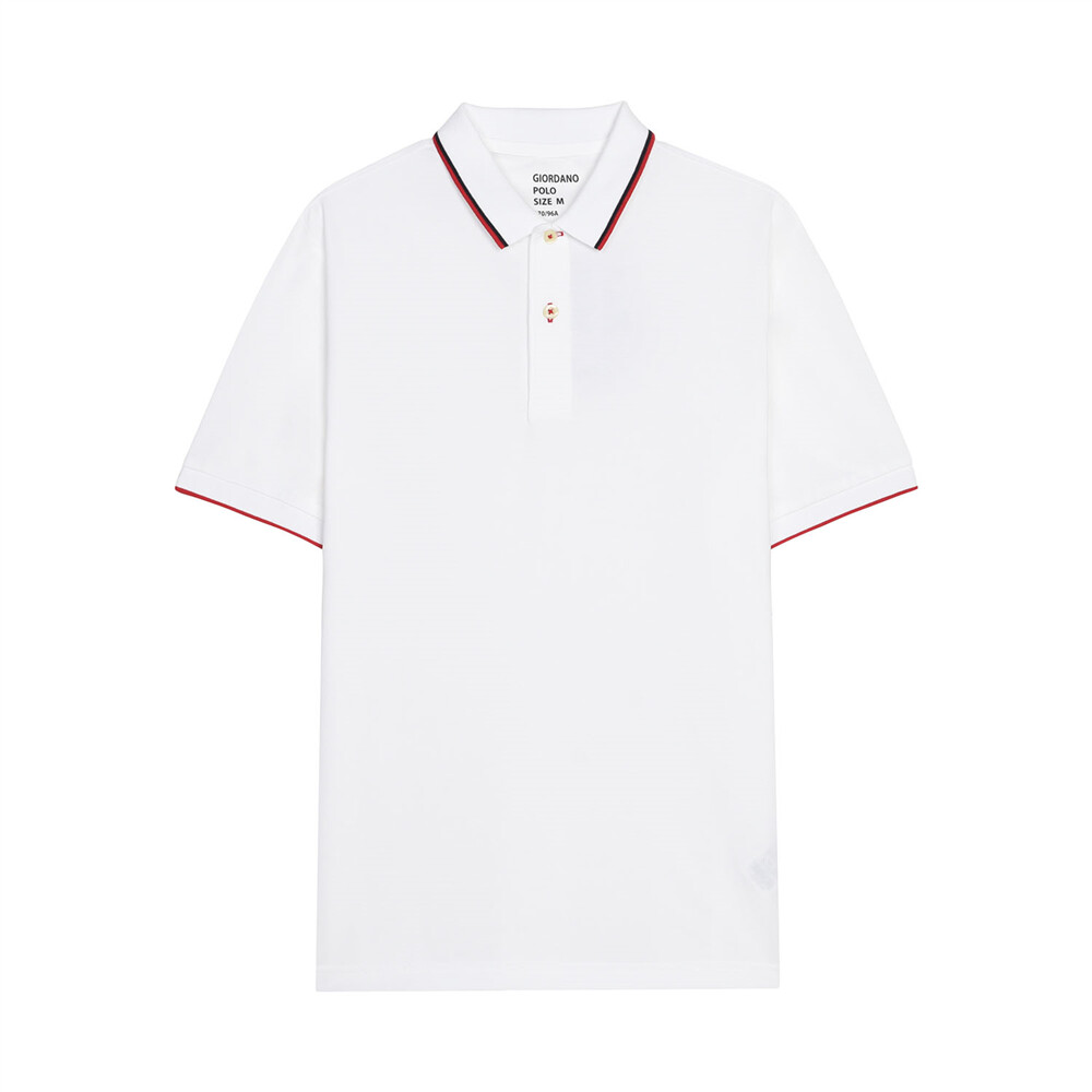POLO collar contrast color embellishment, showing the atmosphere without losing the exquisite fashion taste; cuffs are gathered with ribbing, contrast color edge, and neckline echo. Tapered fit cutting.