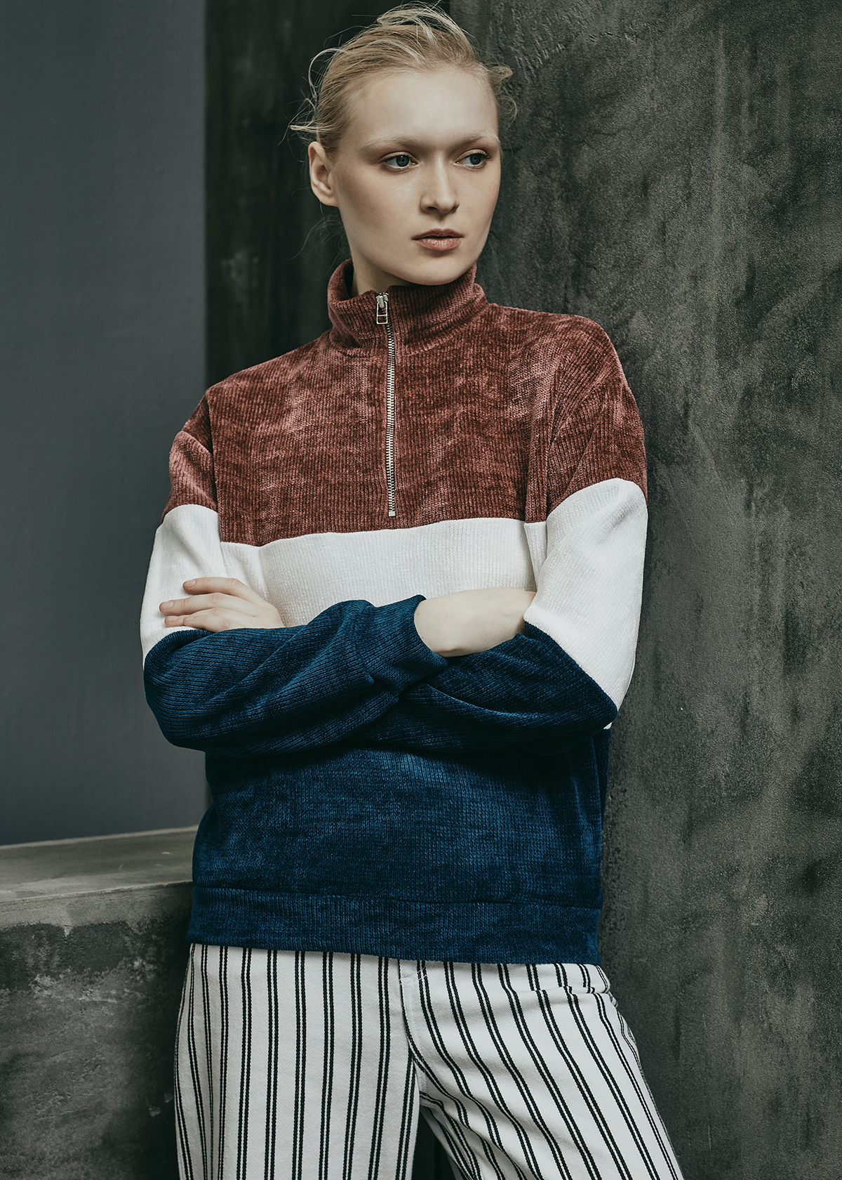 • Henley mock neck with zip fleece topDesigned for a loose fitColour block panel on body