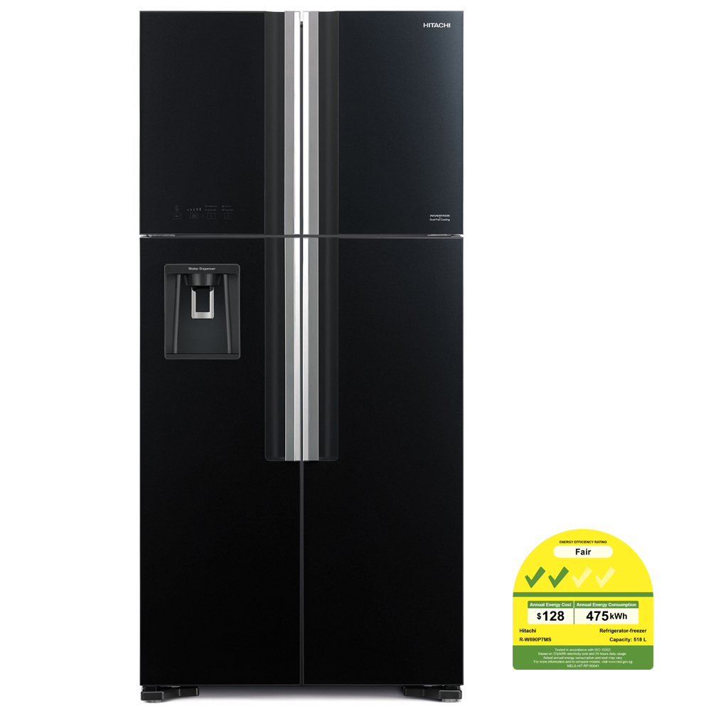Hitachi R-W690P7MSX Big French 4 door fridge 540L|,|
