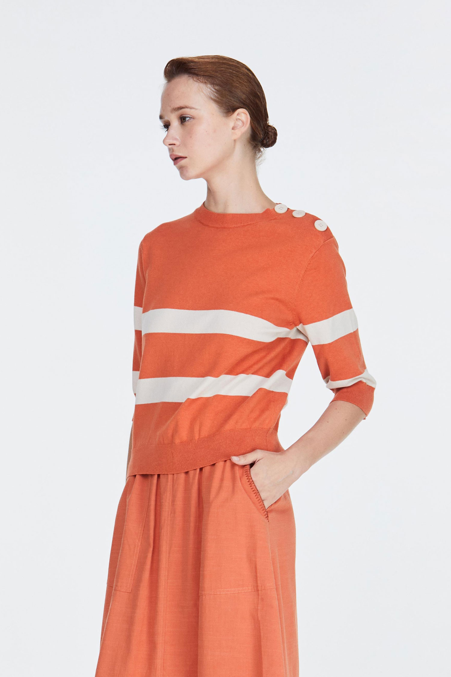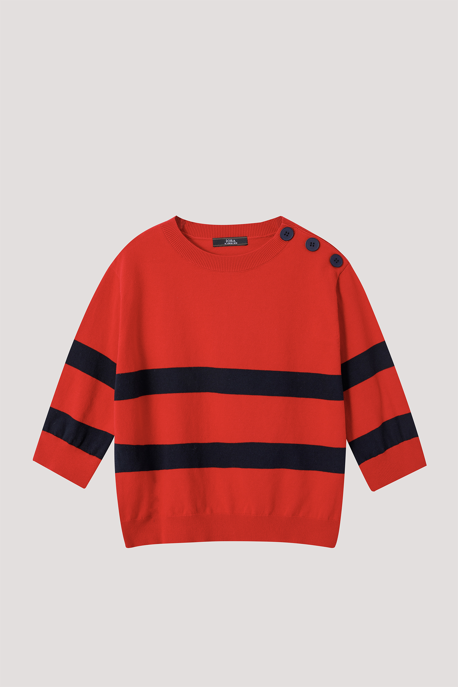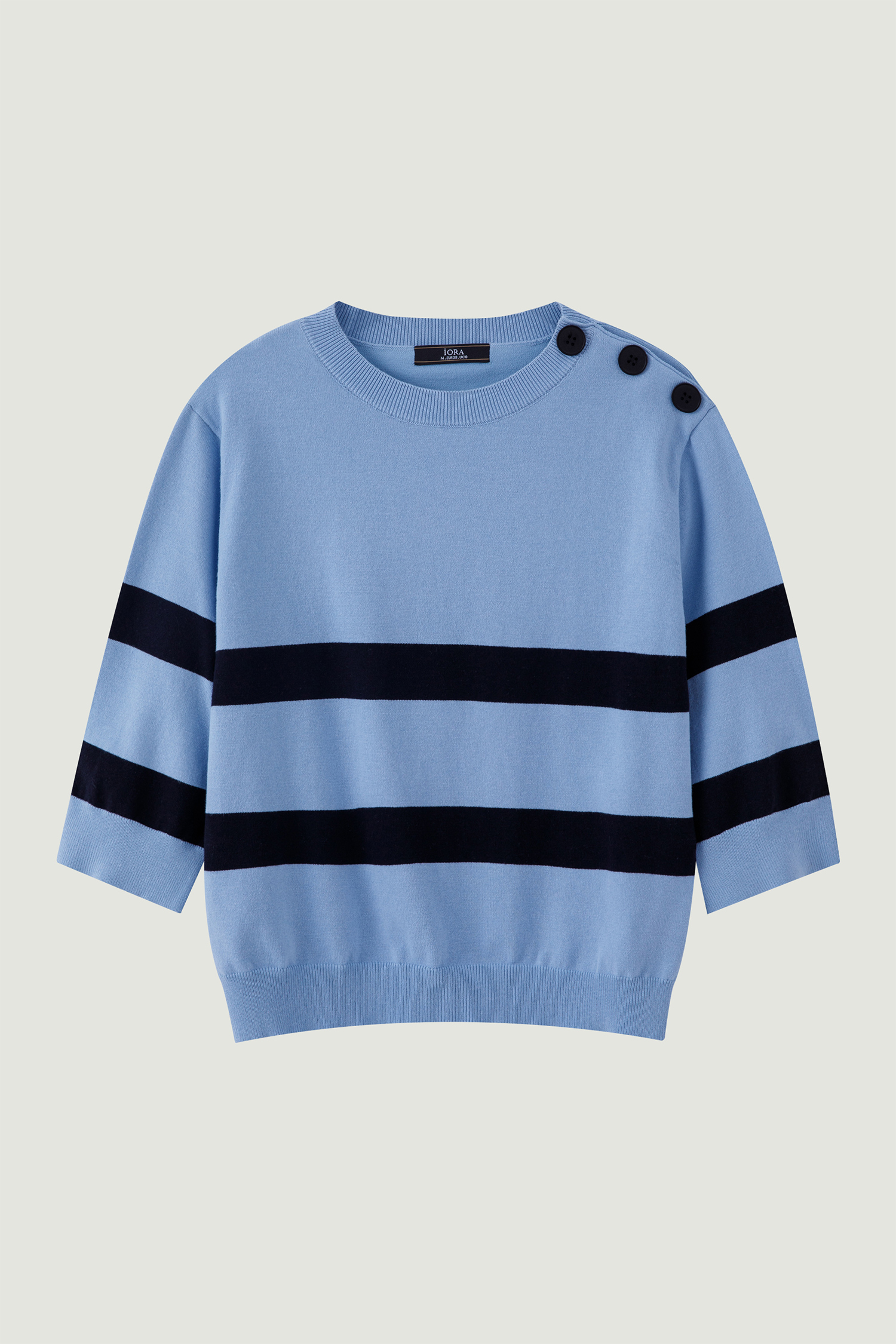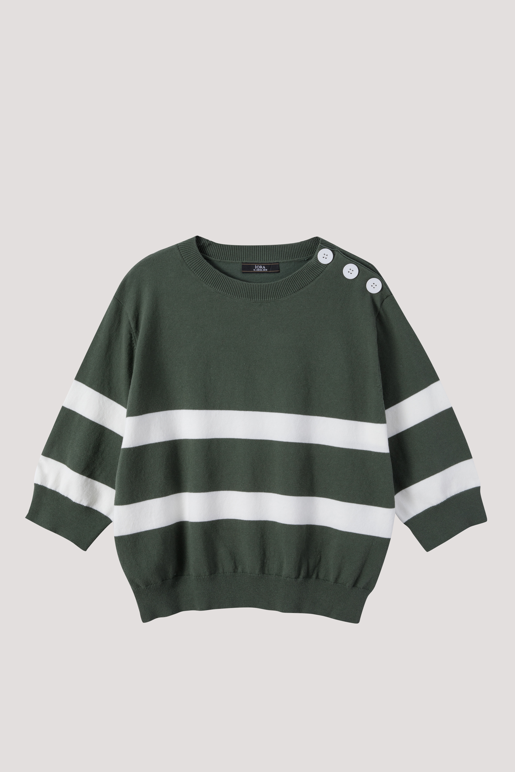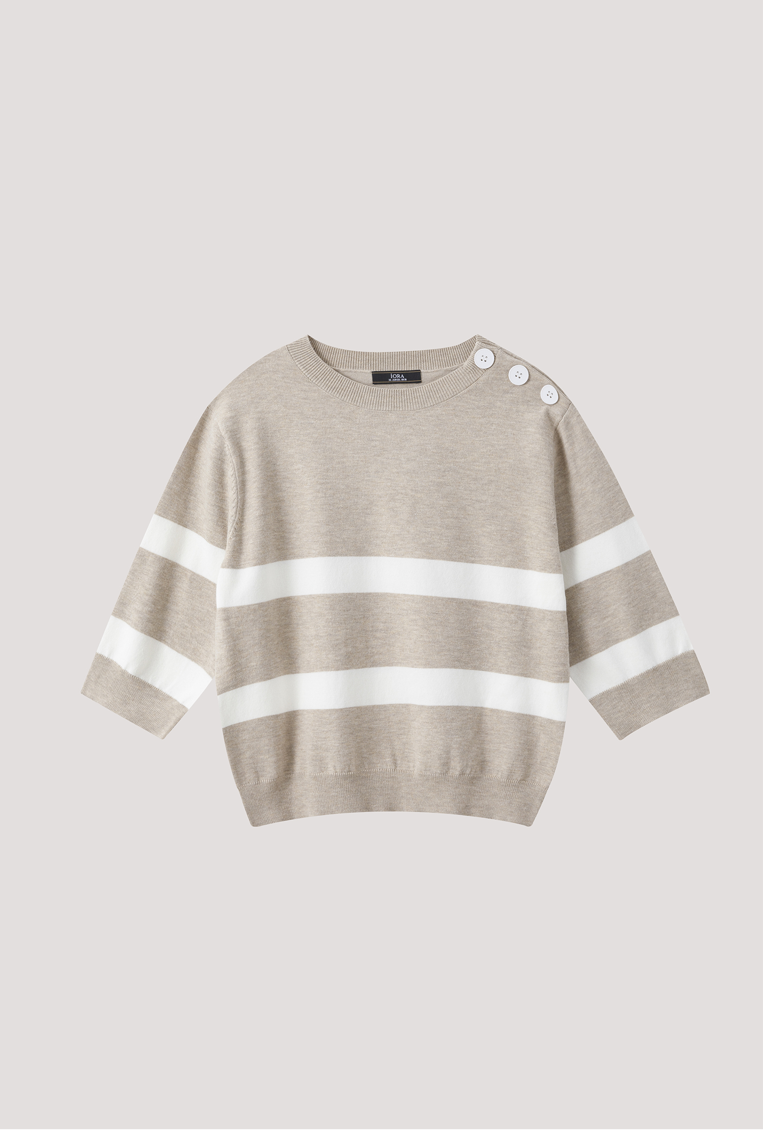 iORA Buttoned Shoulder Striped Sweater|,|
