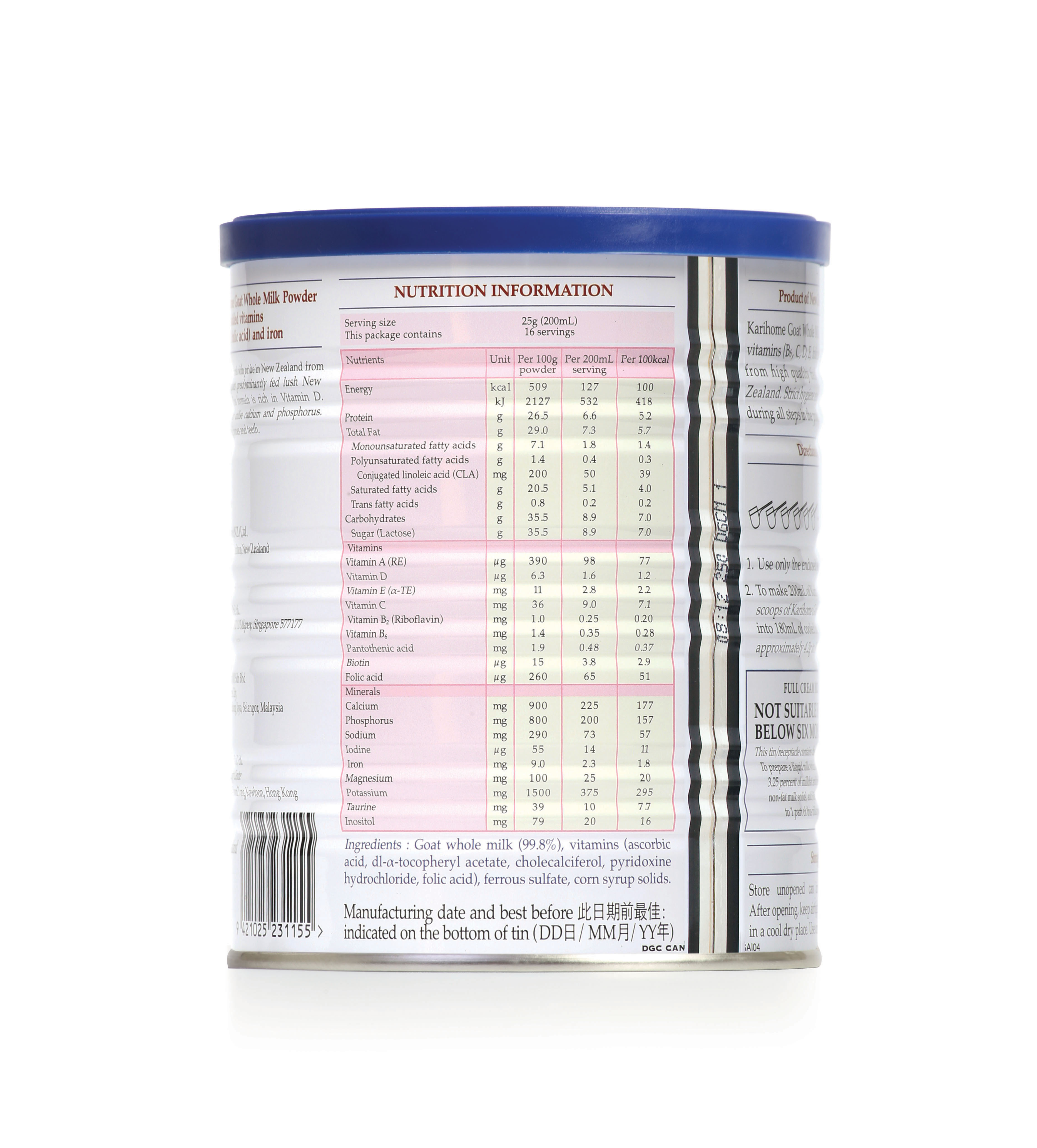 Karihome Whole Milk Powderis produced from fresh goat milk, from which only the water has been removed. The goat milk powder can then be reconstituted in water to produce a crisp and wholesome drink that provides the unique nutritional benefits of goat milk.