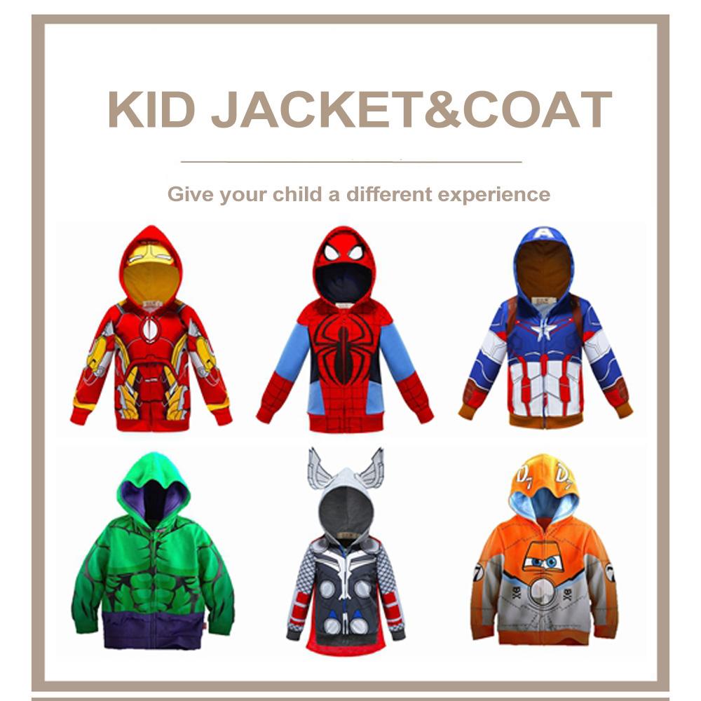 Kids Baby Boy Jacket Coat With Zipper Cartoon Spidermans IronMan Captain America Thor Holk Long Sleeve Casual Sweatshirts Children Boys Jackets Coats|,|