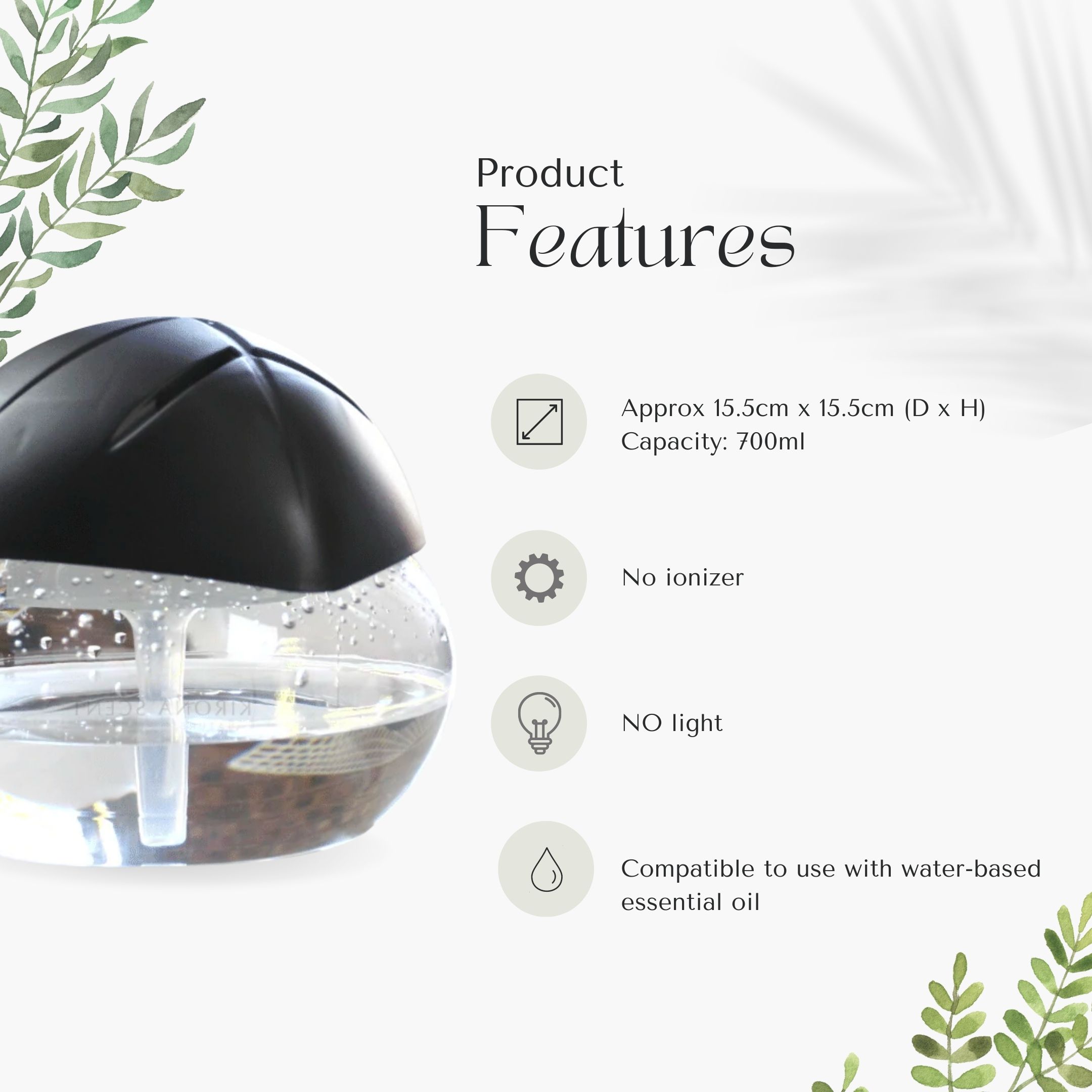 - Compatible to use with water-soluble essential oils