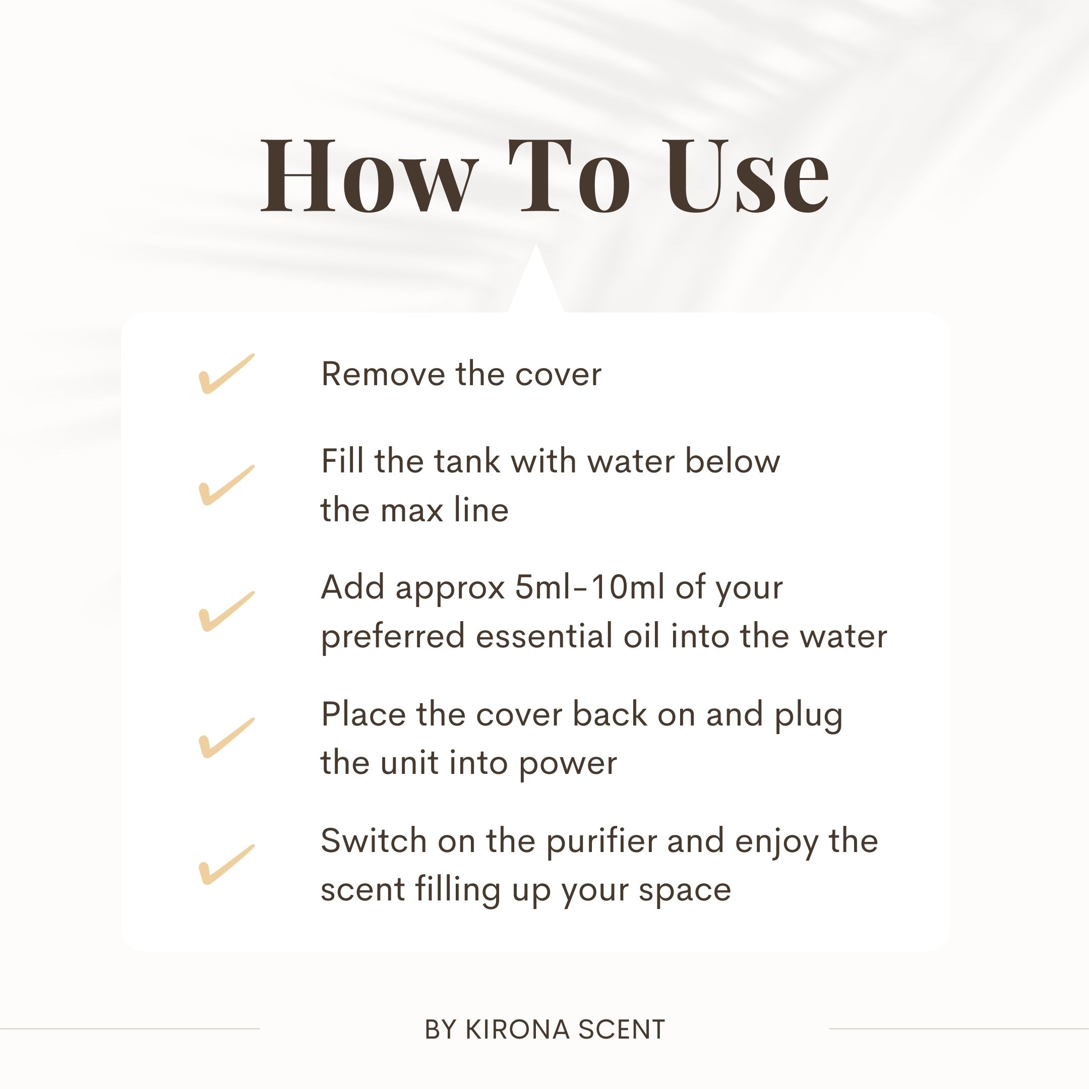 - Easy to use: Fill water to maximum line and add essential oil into the plastic bowl