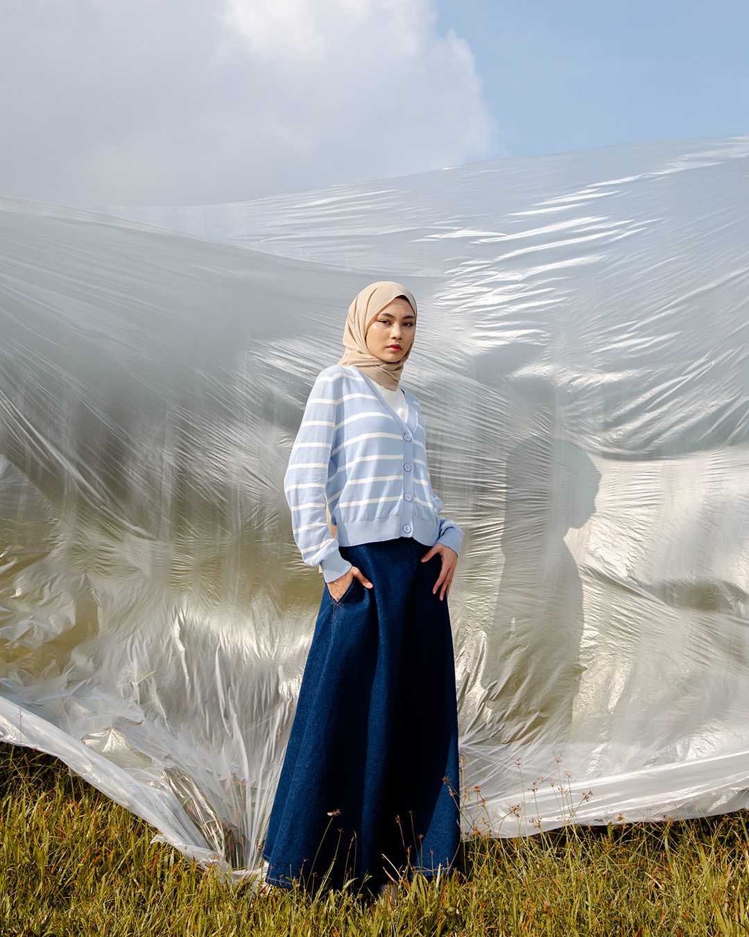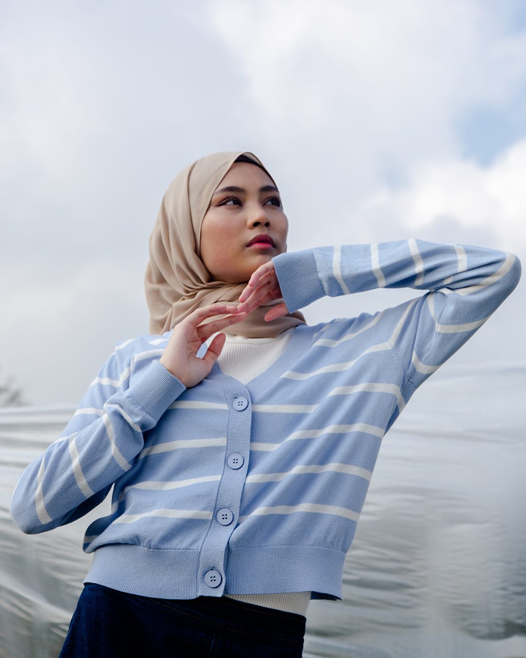 LALU Knitted Long Sleeve Stripes Cardigan|,|