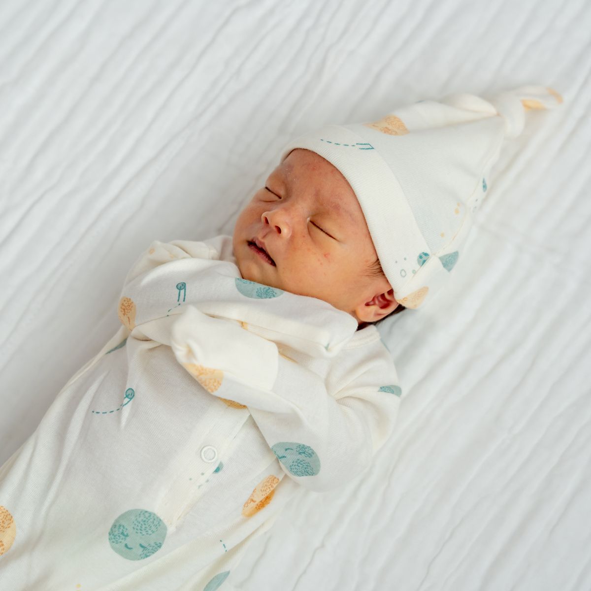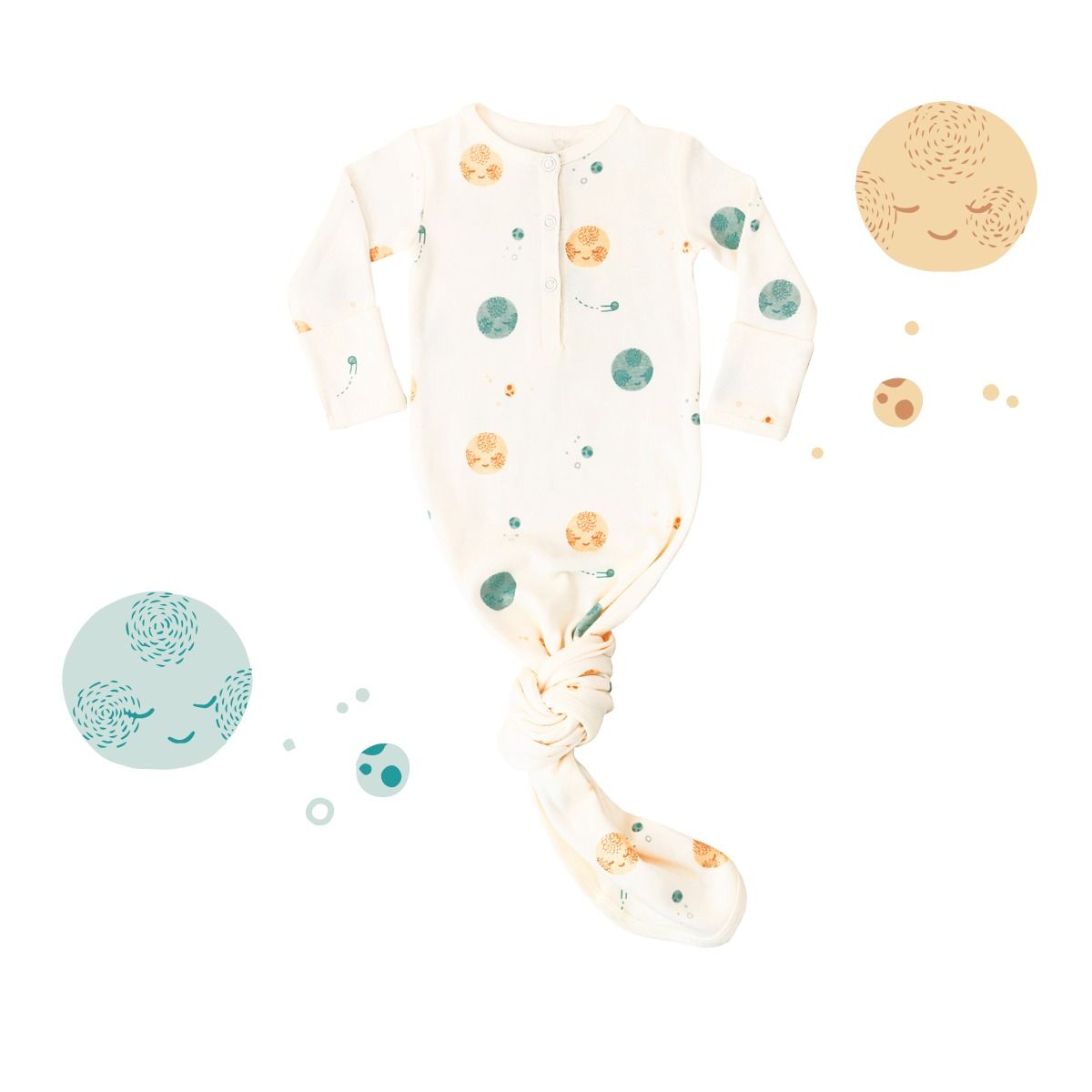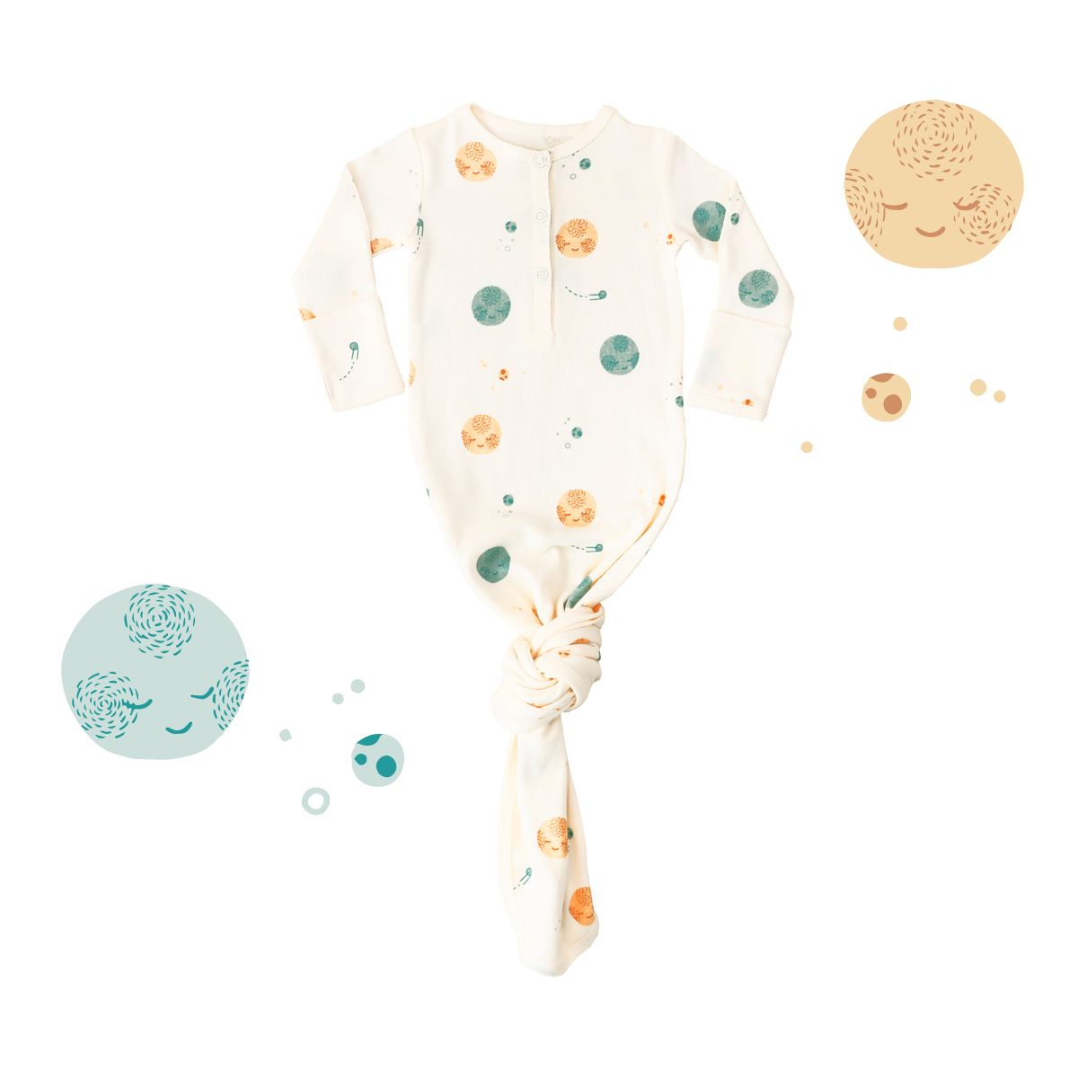 Make outfit and diaper changes a breeze with our organic knotted gowns! Simply secure the bottom with a knot to cover your little one's legs, and untie it when needed. Suitable from birth up to 3 months.