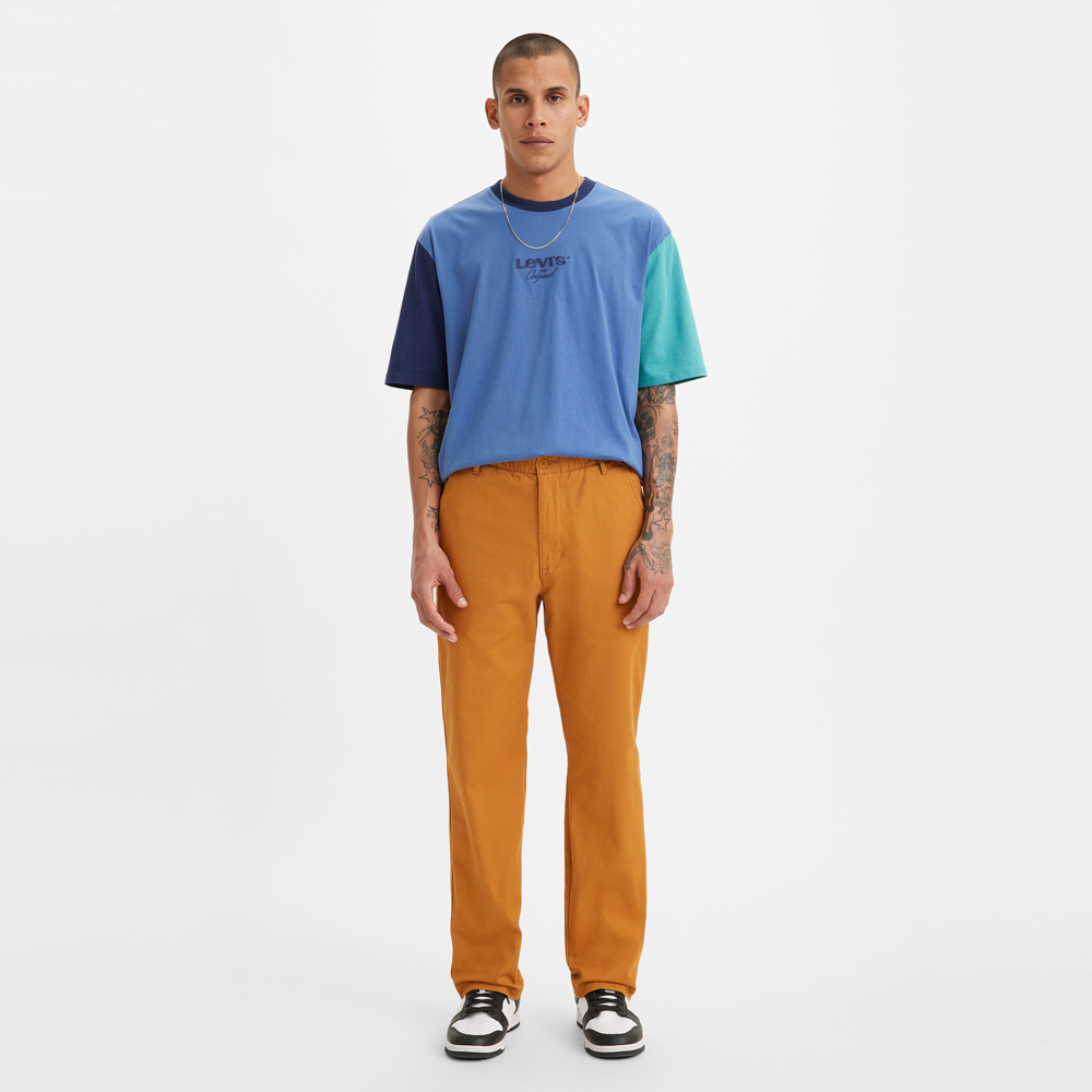 - Introducing Levi’s® XX Chino EZ. With a full elastic waist and Relaxed, Tapered leg, they're easy, versatile and as comfortable as you can get while still looking presentable enough for work. Think equal parts WFH comfort and video conference style. (You'll be making excuses to stand up and show them off.). The ideal WFH chinos. Relaxed fit with a Tapered leg. Full elastic waistband with hidden drawstring. Woven with a hint of Stretch for all-day comfort and easy movement. -98% cotton, 2% elastane -Extra room through the seat and thigh-Sits below the waist-Zip fly-Chino