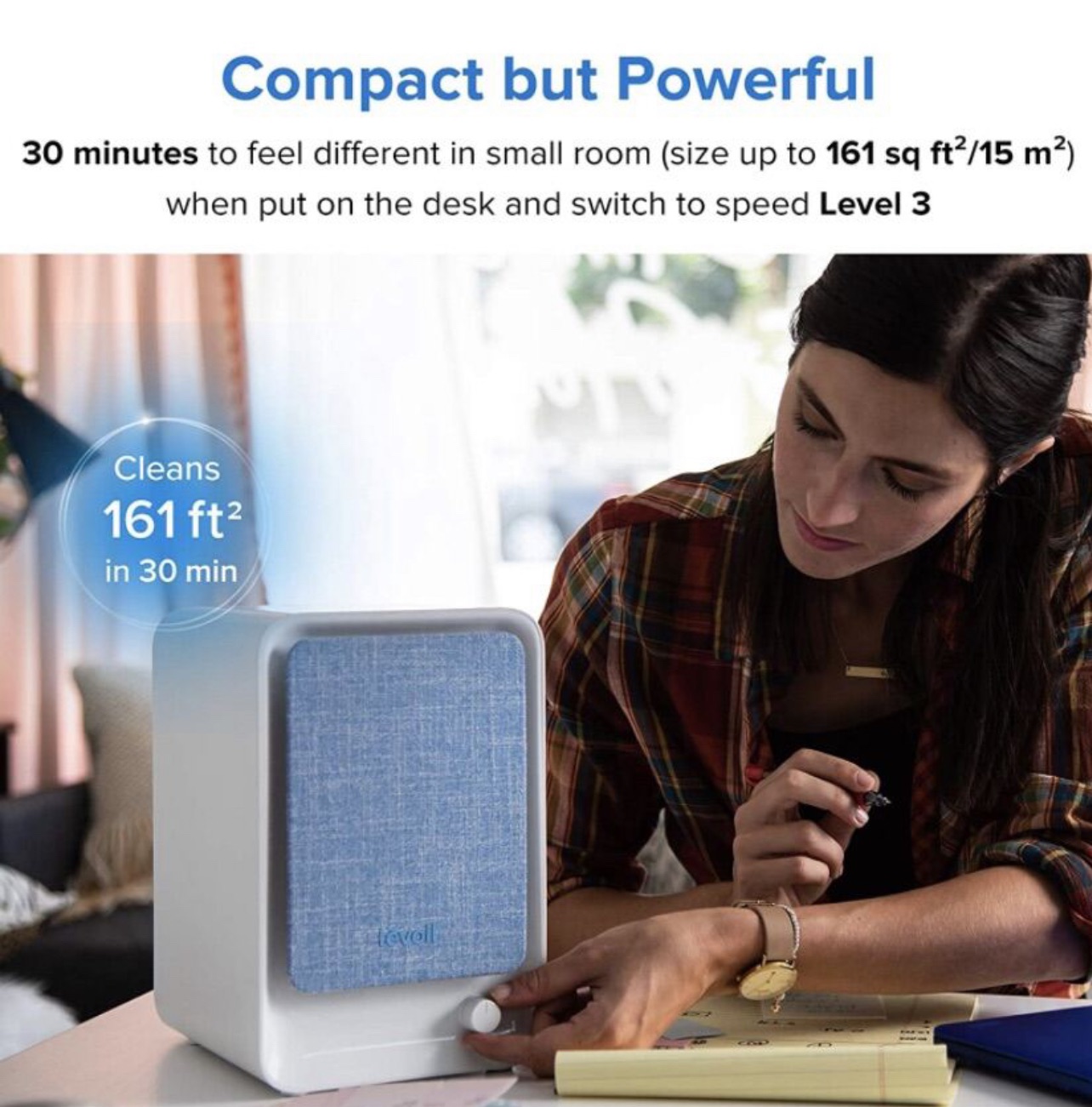 Fill your environment with fresh, clean air using Levoit’s LV-H126 Personal True HEPA Air Purifier. Its compact size and effective 3-stage filtration system make it a perfect fit for any home, office, or dorm.