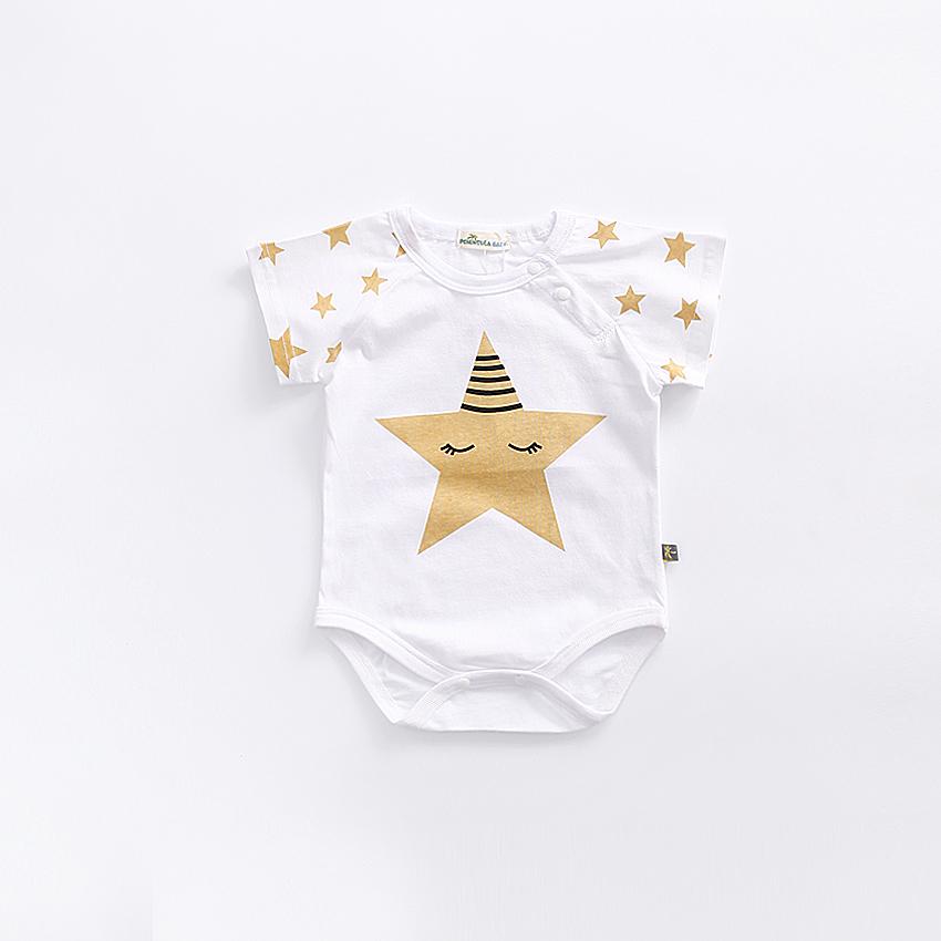 Little Kooma - Baby Star Bodysuit Short Sleeves with Cute Star prints - Pink & White|,|