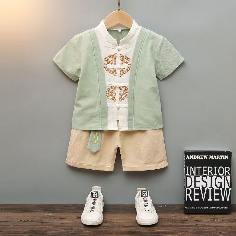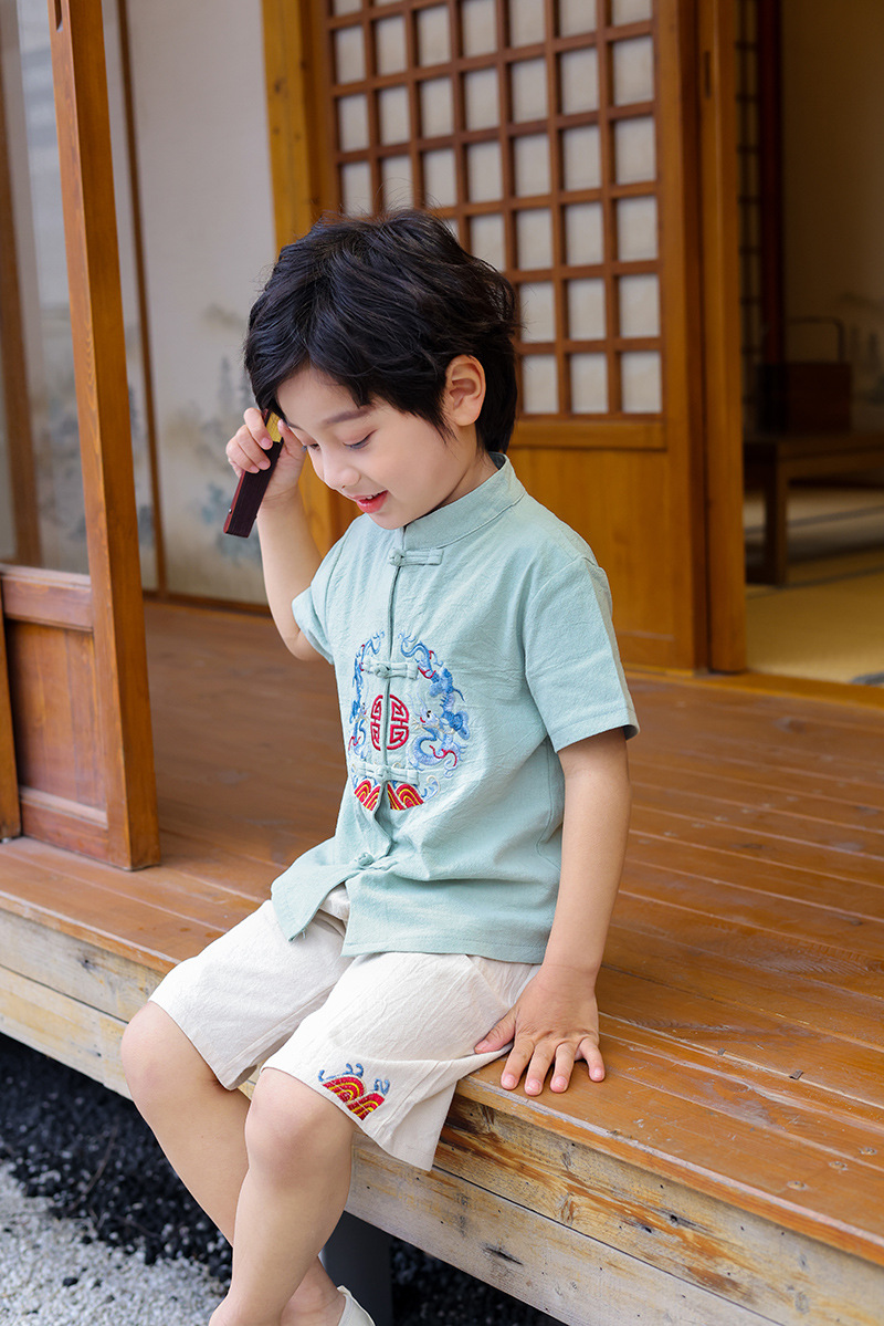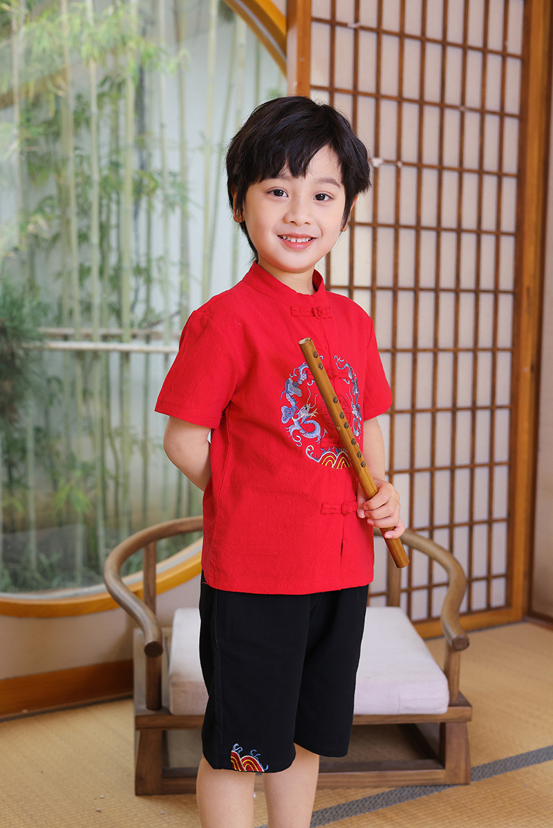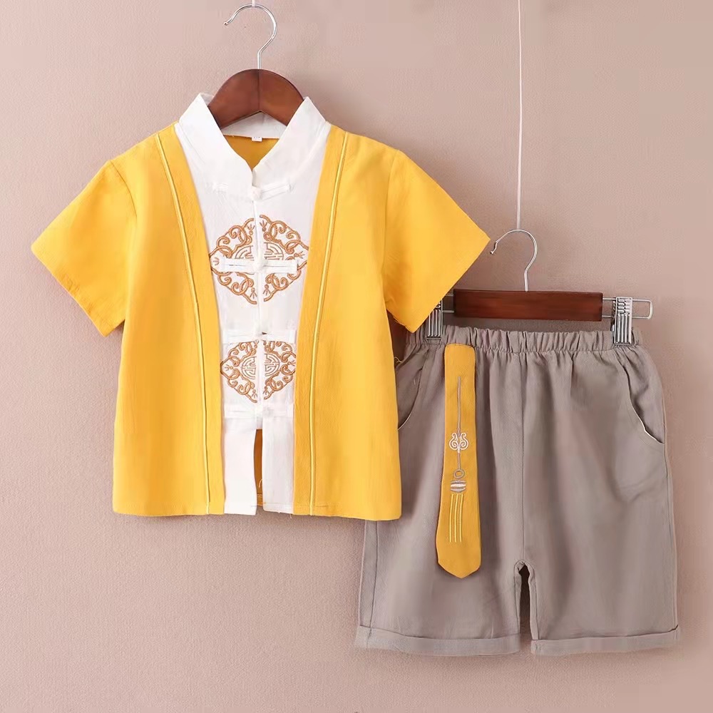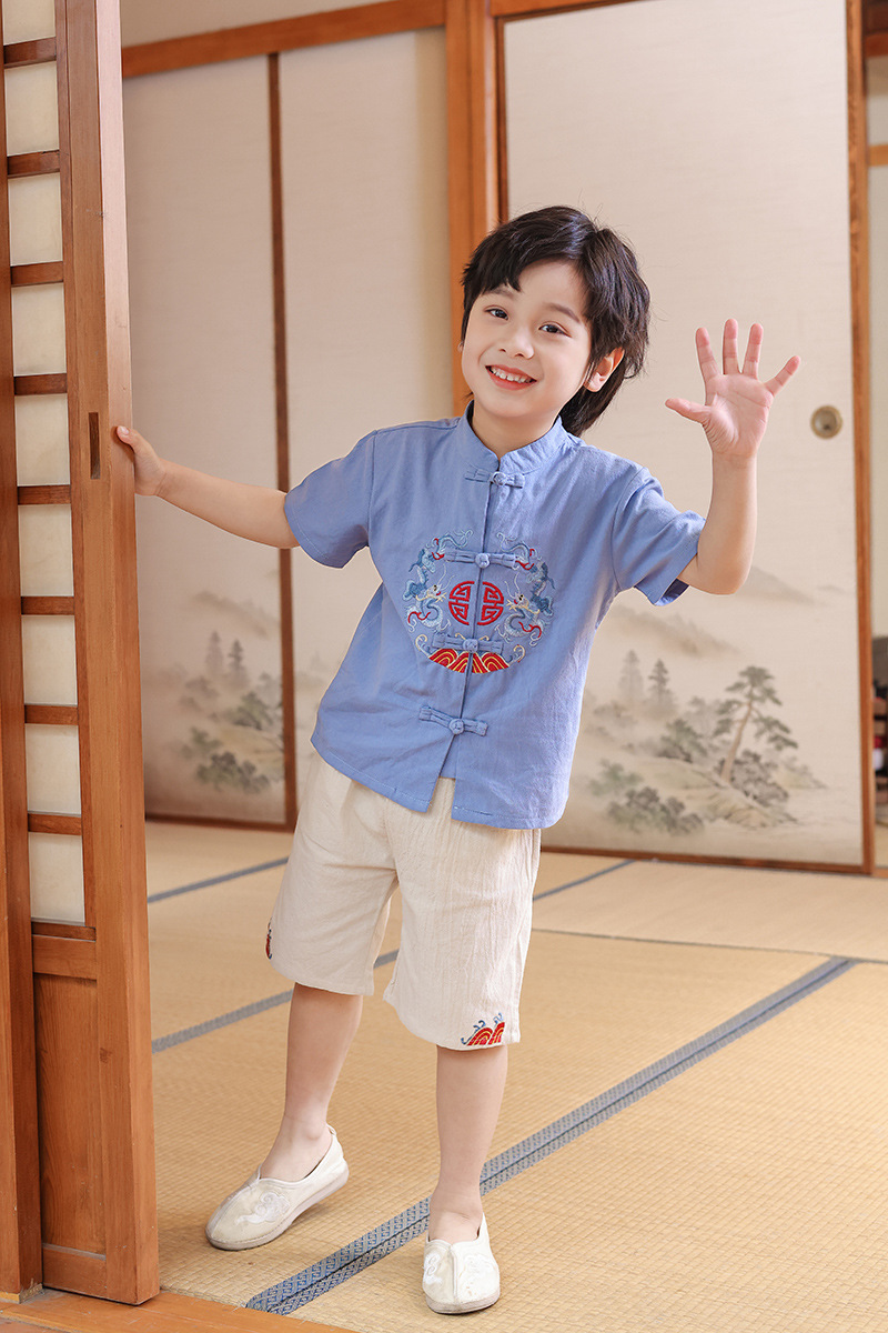 + LITTLE MUSHROOMS + KIDS CHILDREN BOY CHINESE NEW YEAR TRADITIONAL COSTUME KUNGFU SUIT SET CNY RACIAL HARMONY DAY LINEN COTTON|,|