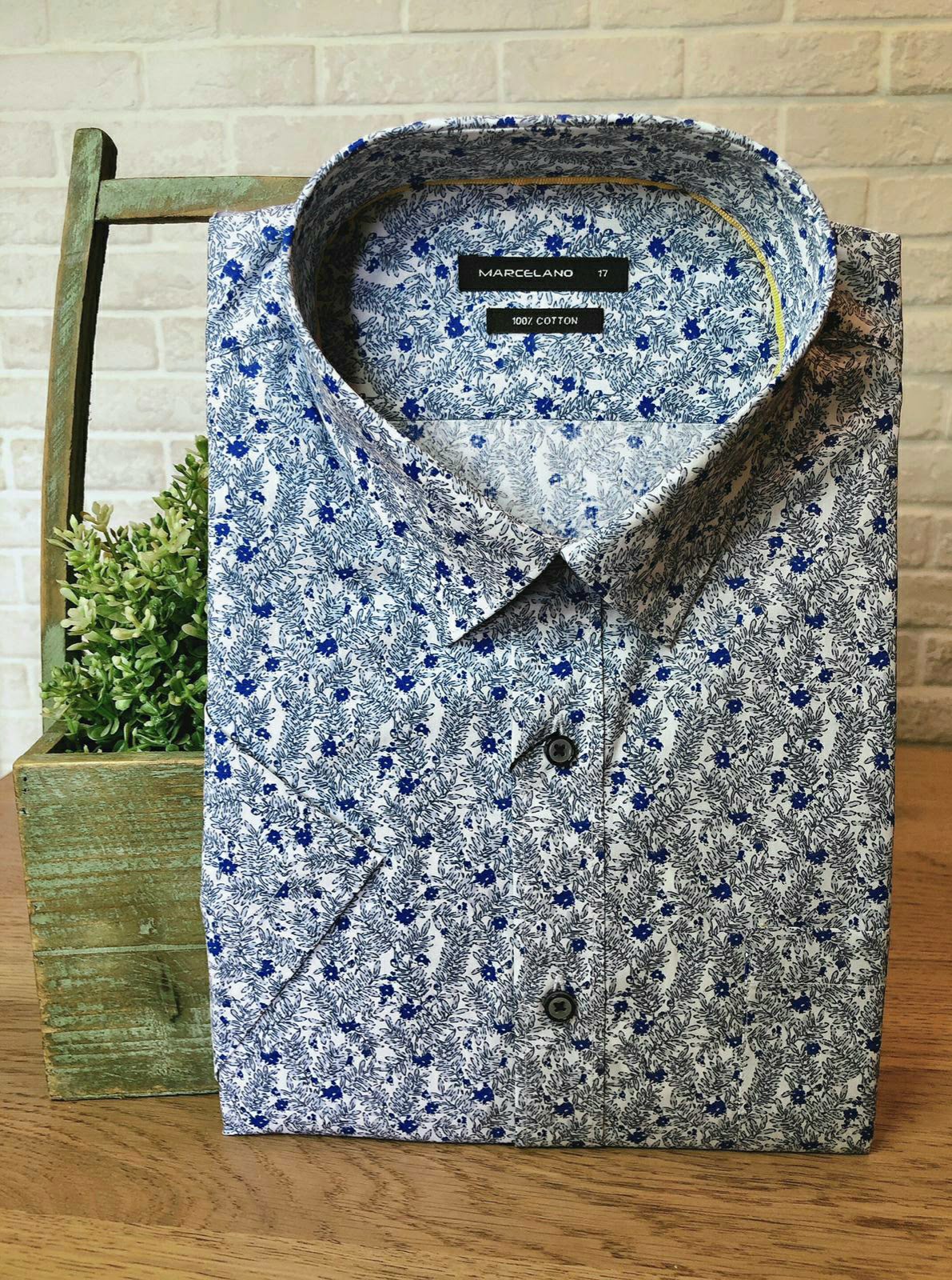 MARCELANO Men Floral Printed Short Sleeve Smart Casual Wear Shirt|,|