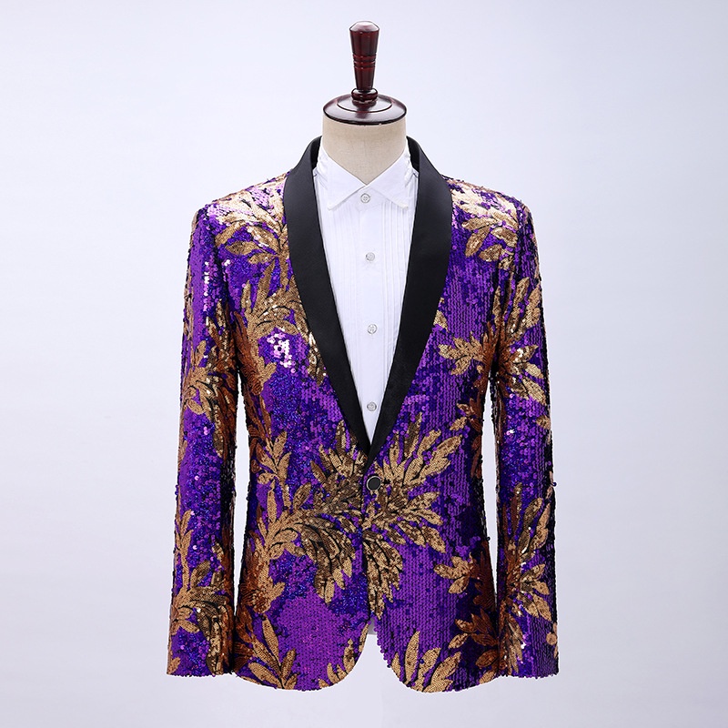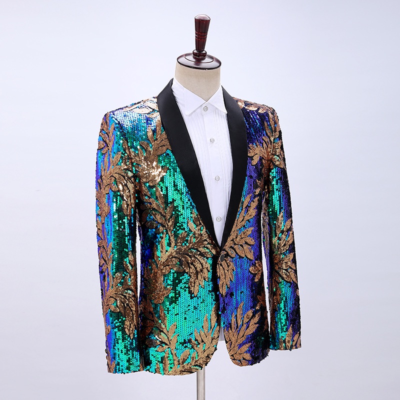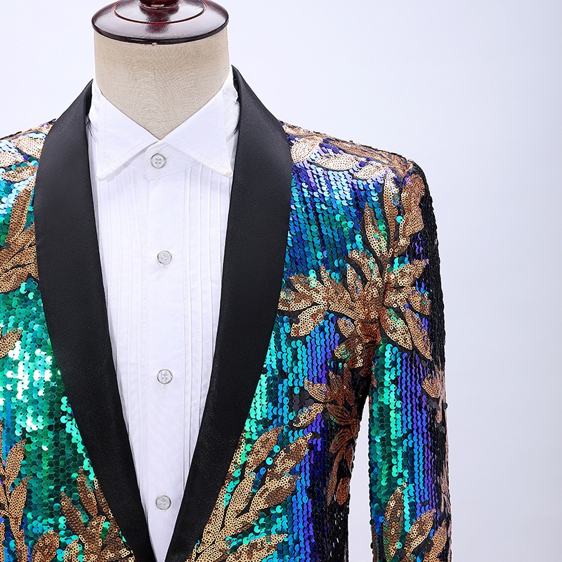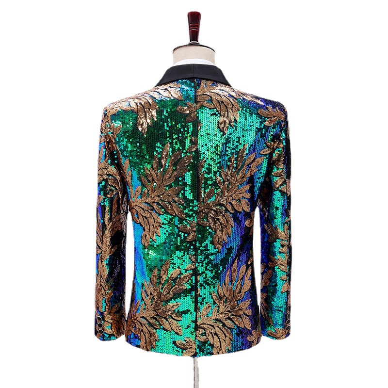 Men Sequins Stage outfit Stylish Leaves Pattern Blazers Party Wedding Banquet Nightclub Singers Blazer|,|