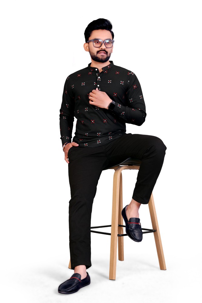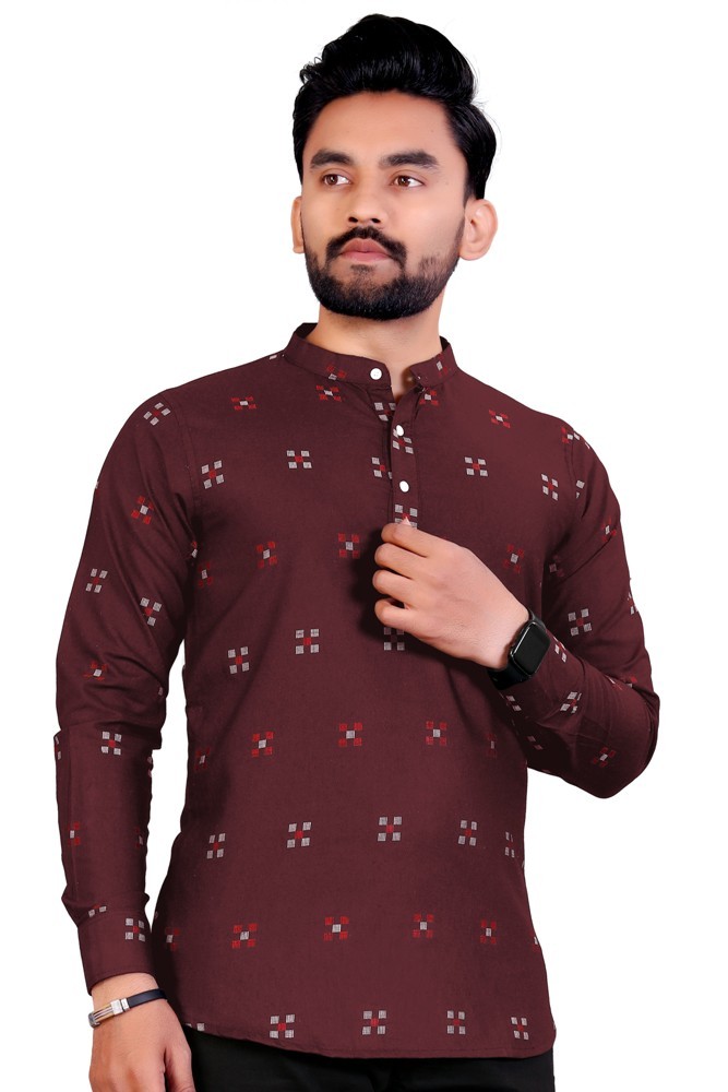 Men's Short Kurta Shirt Viewing Printed Box pattern collation