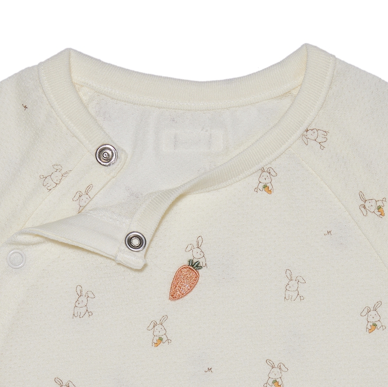This bodysuit is crafted from eco-friendly bamboo fabric that blends natural bamboo and cotton, providing natural antibacterial and deodorizing functions. It features a cute Lulu pattern and a carrot embroidered badge, making it a perfect gift for new parents and their babies.