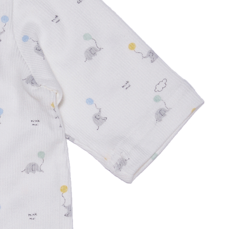 This baby bunting bodysuit is designed with a slim fit and short sleeves, crafted from eco-friendly bamboo fabric that blends natural bamboo and cotton, providing a ribbed and stretchy texture. The cute elephant print and leather label adornments add a touch of style to make it a perfect gift for parents with a baby.