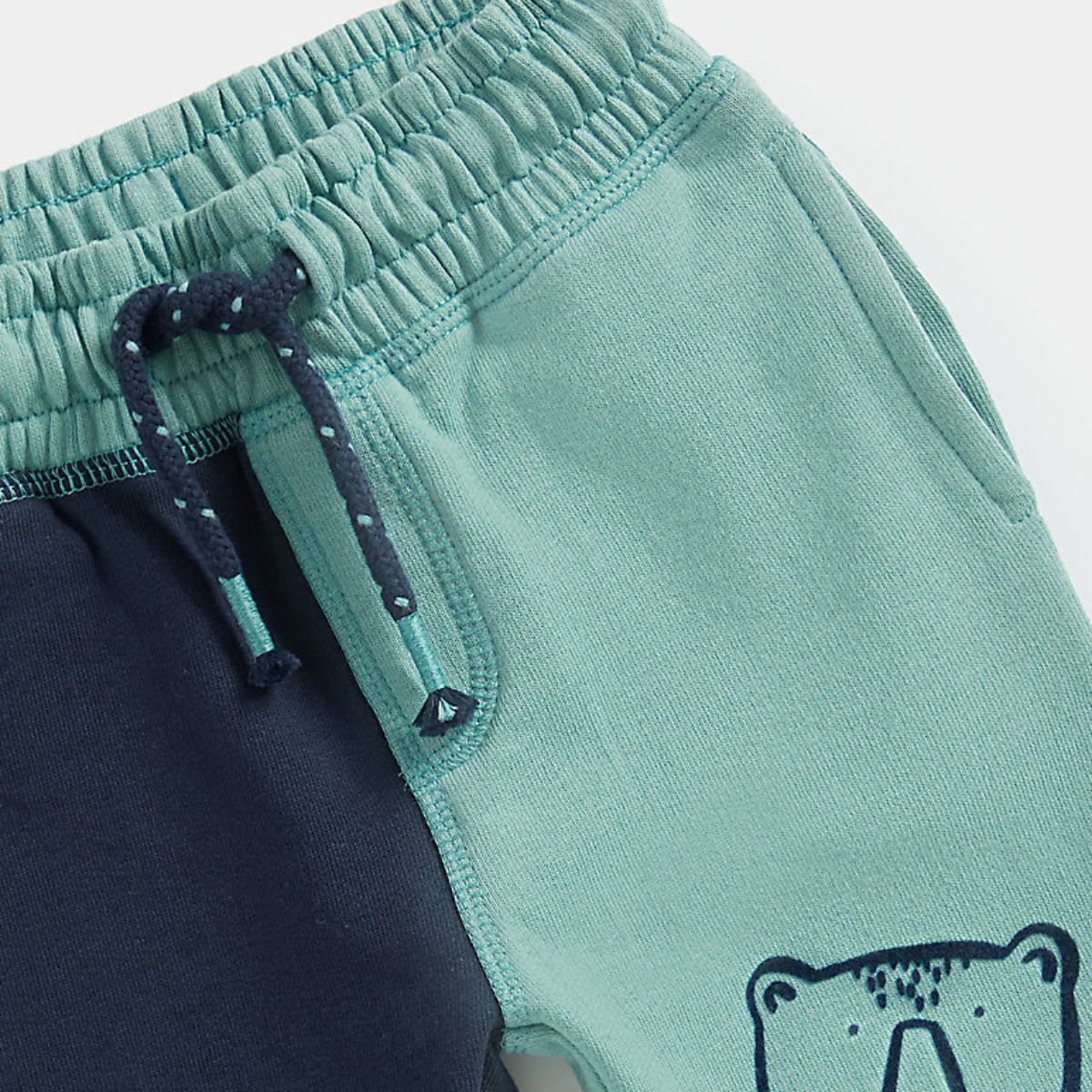 With contrasting coloured panels and a friendly bear on each knee, these soft and comfy jogger trousers are ready to explore. A wide, elasticated waistband makes dressing easy and a drawstring cord keeps them secure.