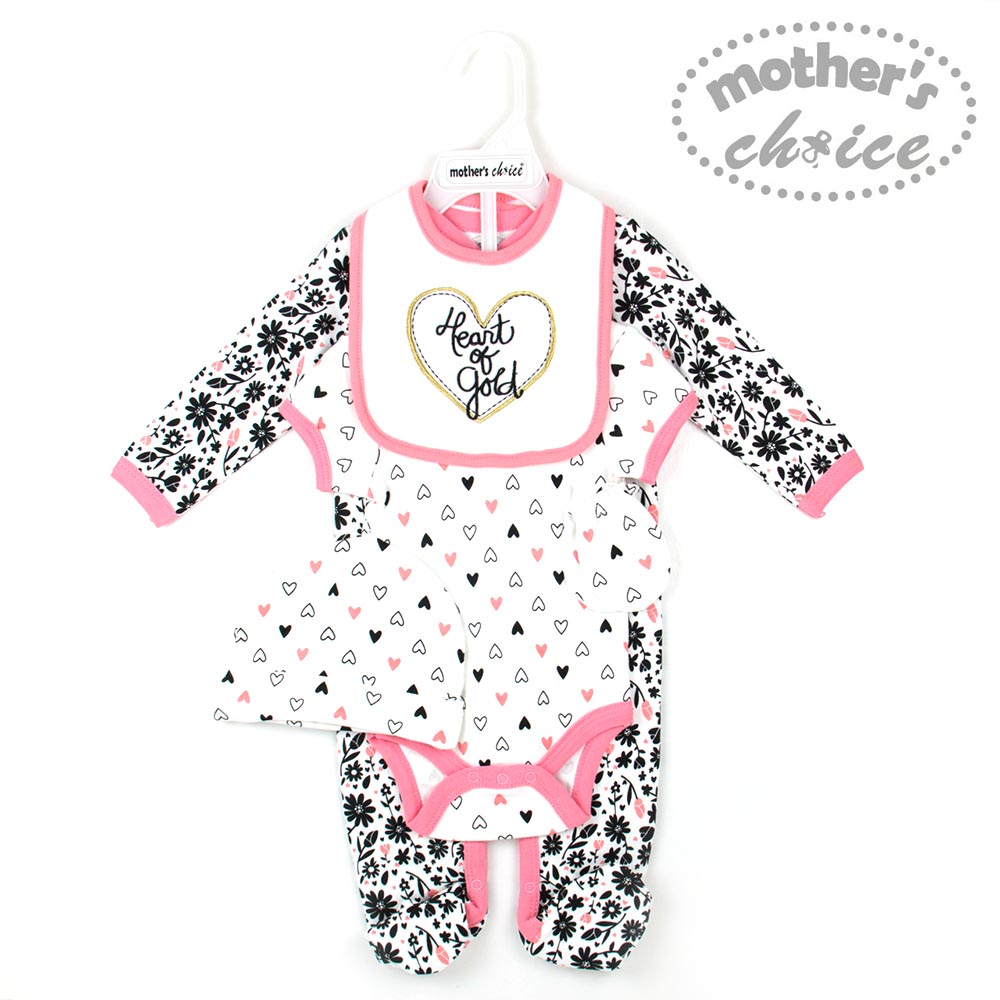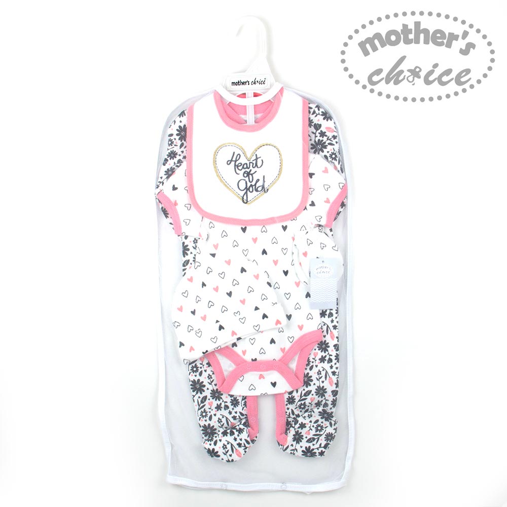 Mother's Choice Baby Short Sleeves Newborn Clothes Jumpsuits [Winter] Unisex Baby Pyjama Set Baby Layette Gift Set Soft Cotton Set-5 pcs( 0-6 Months)|,|