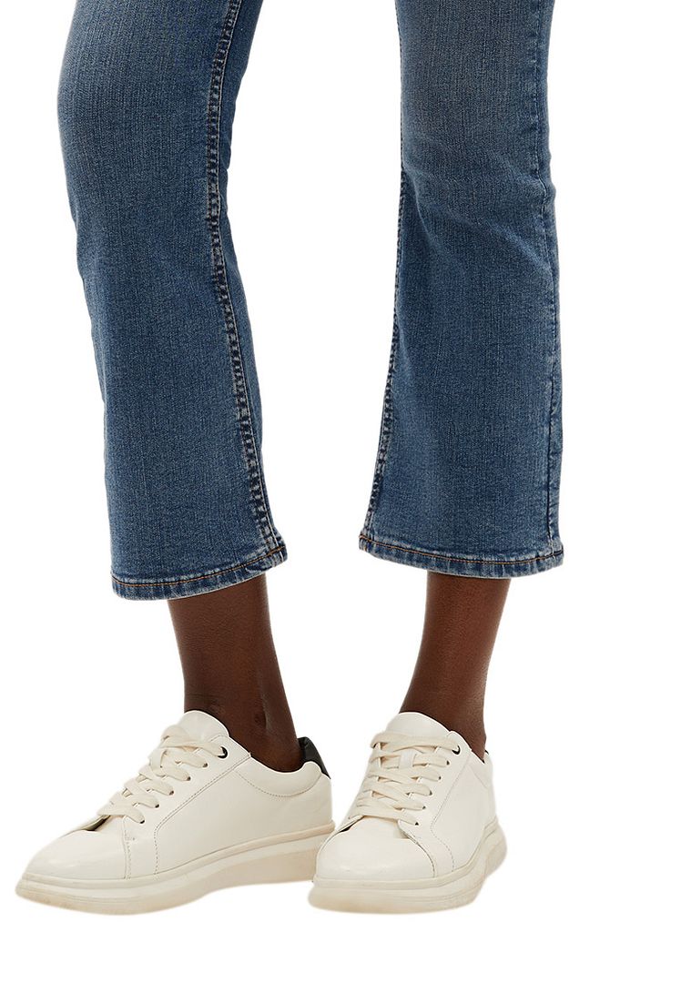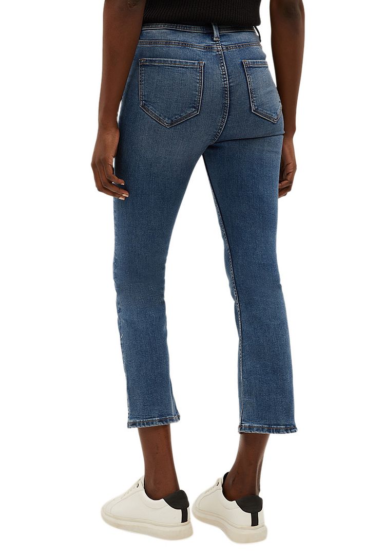 M&S Collection: easy-to-wear wardrobe staples that combine classic and contemporary styles.Product Style: Flared, Button and zip fastening, High rise, Recycled polyester. Pre-reduced Indigo is a cleaner and more resource efficient dye, using less chemicals, water and energy in the dyeing process.Material Composition: 74% cotton, 24% polyester and 2% elastaneCare instructions:Machine washable