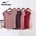 Newdenber Women Summer V-neck Sleeveless Shirt Bamboo Fiber Top Plain Cotton Ladies Slim T-shirt|,|