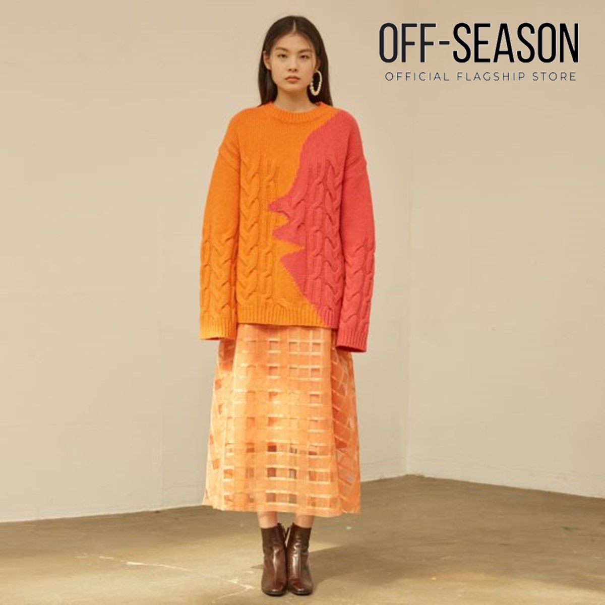 Brand Story Fashion designer and artist, Daeun Lee, created VLEEDA with the idea of allowing her artwork to flow into clothing, allowing the wearer to artistic pleasure when dressed in her designs. Launched in 2014, the label brings a sense of wearable art meets ultra-feminine style with its prints and wearable looks. VLEEDA Fall Winter 2017 Collection Oversized knit sweater Orange and pink colourblock Model is 1.77m tall and is wearing size S. Care: Dry-clean or gentle machine wash in cold water. No tumble dry in high heat. Material: Lamb Wool, Nylon Origin: Korea