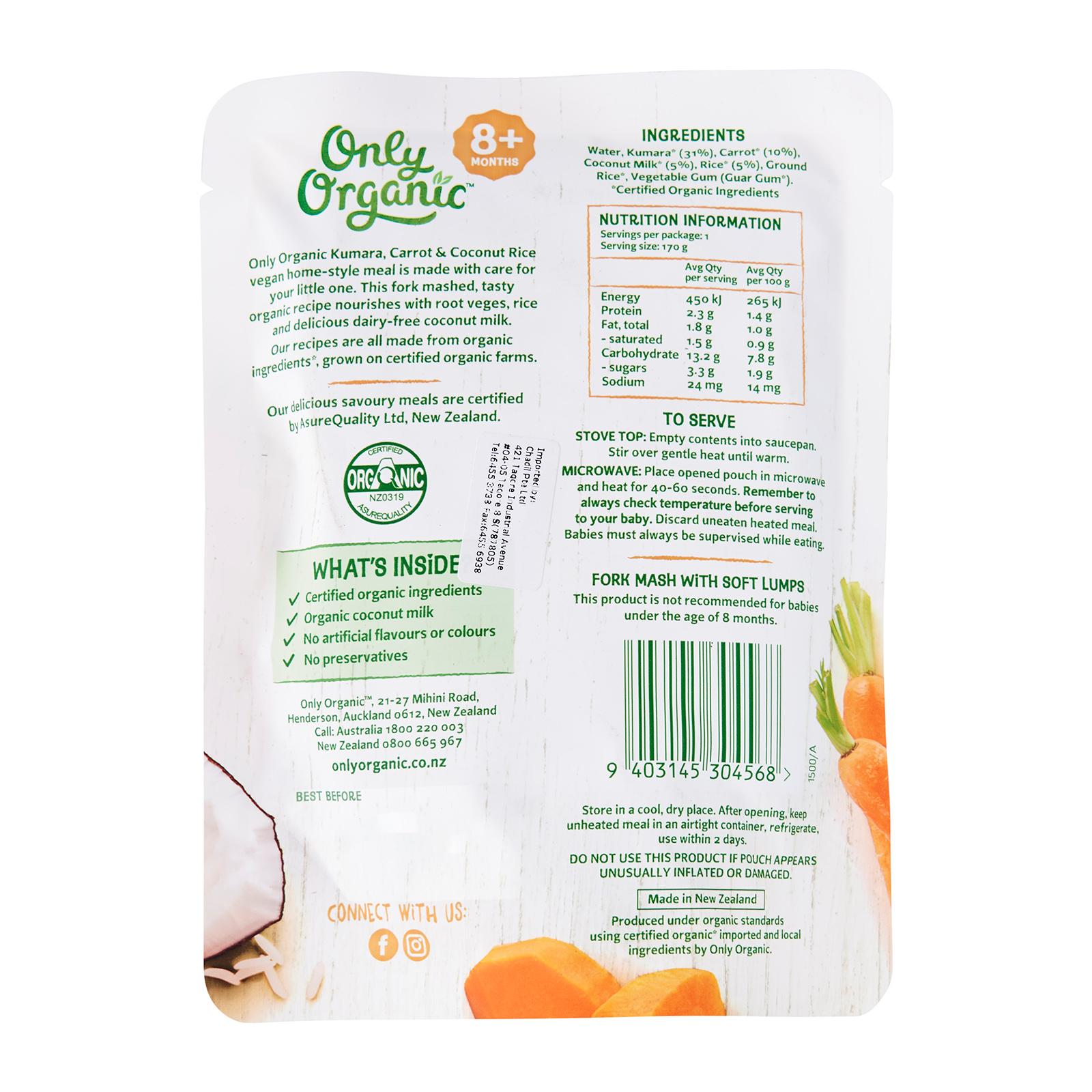 Only Organic Kumara Carrot & Coconut Rice 170G - From 8 Months Jar|,|