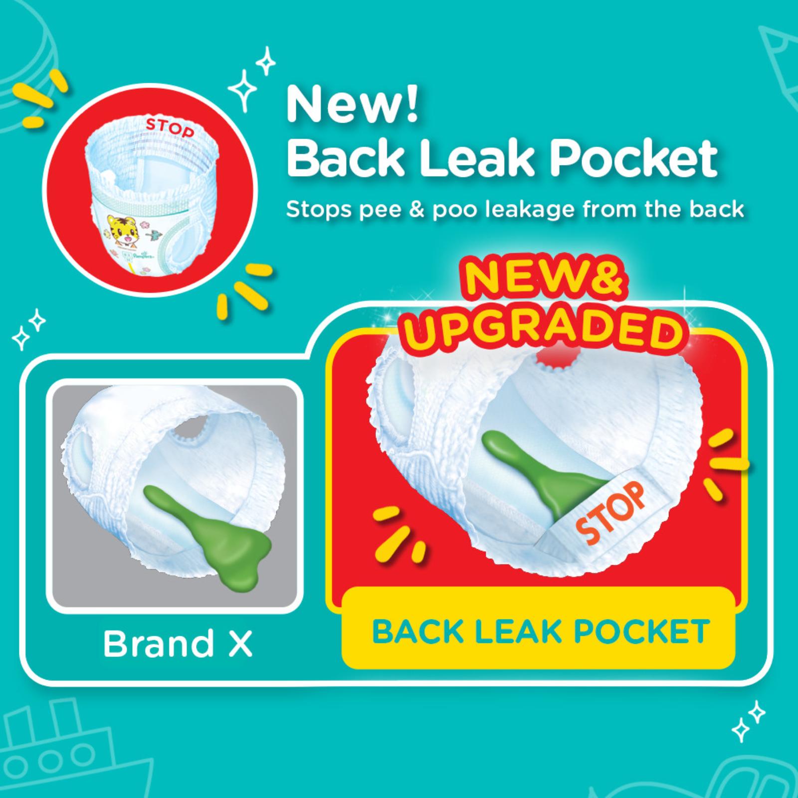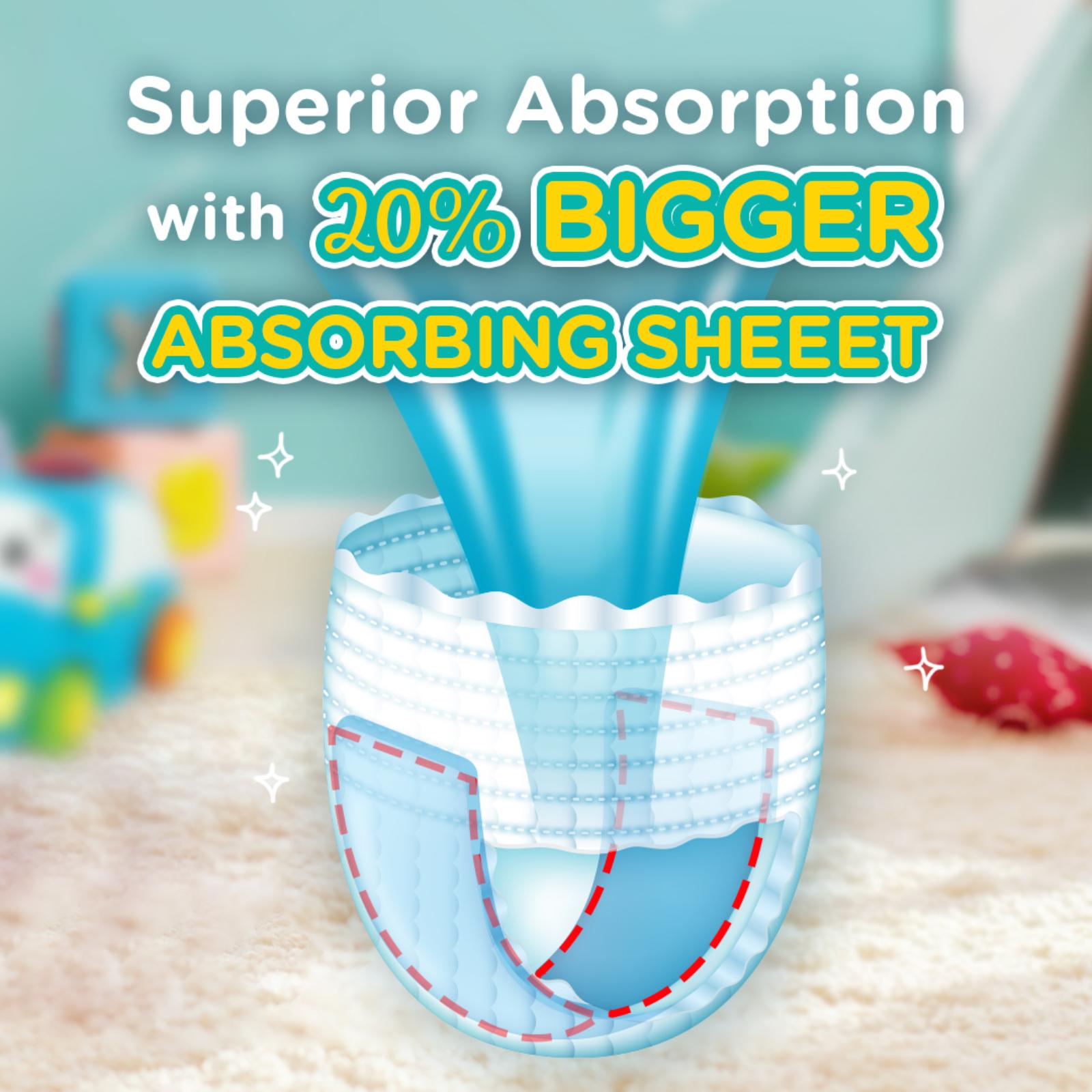 New Made In Japan Pampers Baby Dry Pants delivers up to 12 hours of superior overnight dryness in easy to change pants. With a 360 degrees slim fit, it fits your baby comfortably no matter how your baby moves during day and night. The Soft Touch-Dry Layer quickly absorbs wetness to keep it away from baby's skin. Magic Gel helps to absorb and lock in up to 7 wettings. Make your baby always feeling fresh with Magic Gel which absorb more than 30x than its weight. Thin and soft design for your baby's skin comfort. Cotton-like soft belt that wraps your baby's bottom gently in comfort with air circulation for dry skin. Suitable for 15-25 kg.