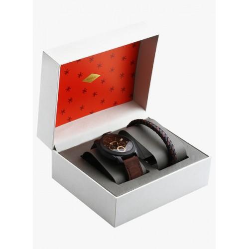 [Powermatic] Fossil Men's FS5251SET Machine Chronograph Dark Brown Leather Watch & Bracelet Box Set (Black & Brown)|,|
