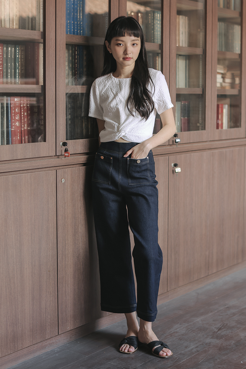 A pair of denim jeans never fails! This is better without the fly front zip and comes with functional front patch pockets embellished with gold snap buttons!