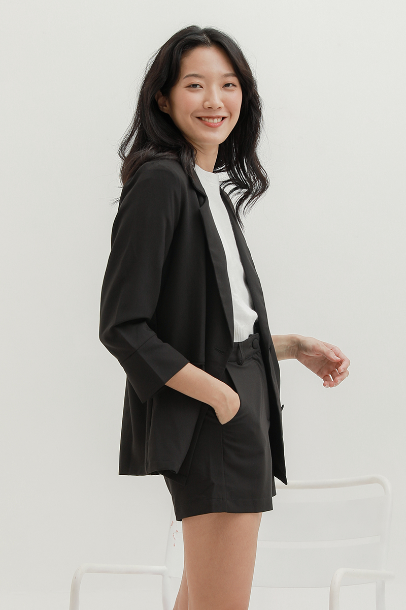 [RESTOCK 2] Purpur Women Outerwears Mackenzie Casual Button Slit Sleeves Blazer with Front Pockets Black|,|