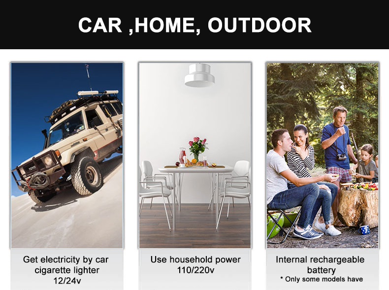 - CAR AND HOME USE: includes 2 power cables to separately connect with 12/24V DC and 110V to 240V AC power inputs. Run great with your small solar system as well.