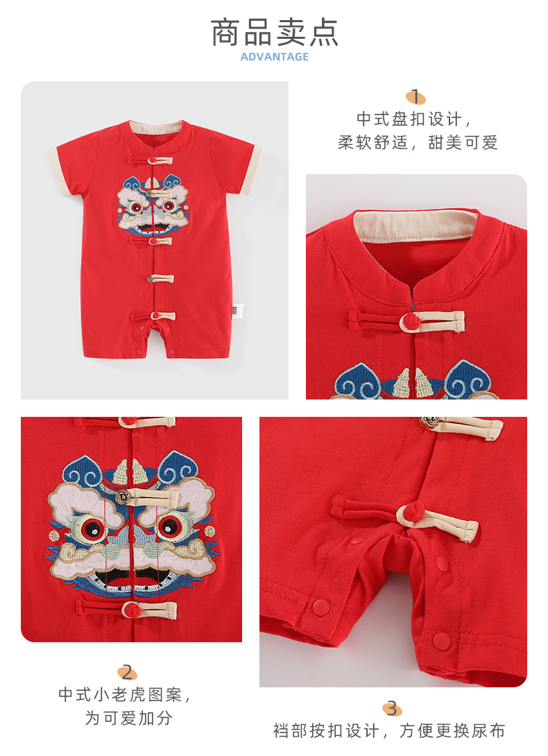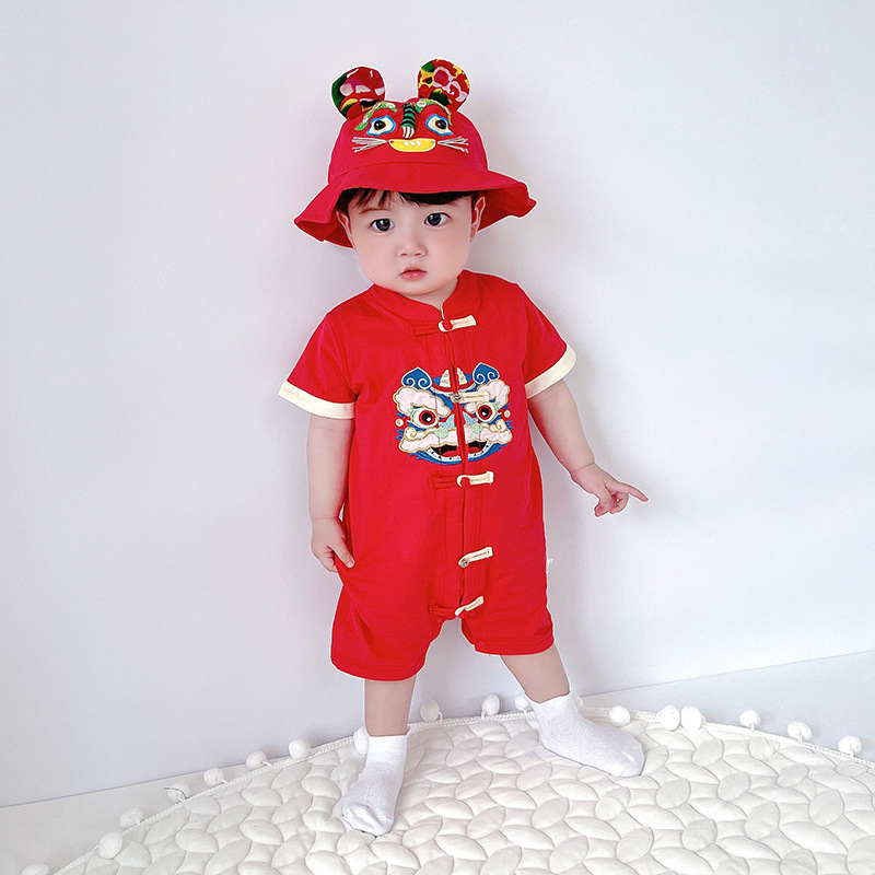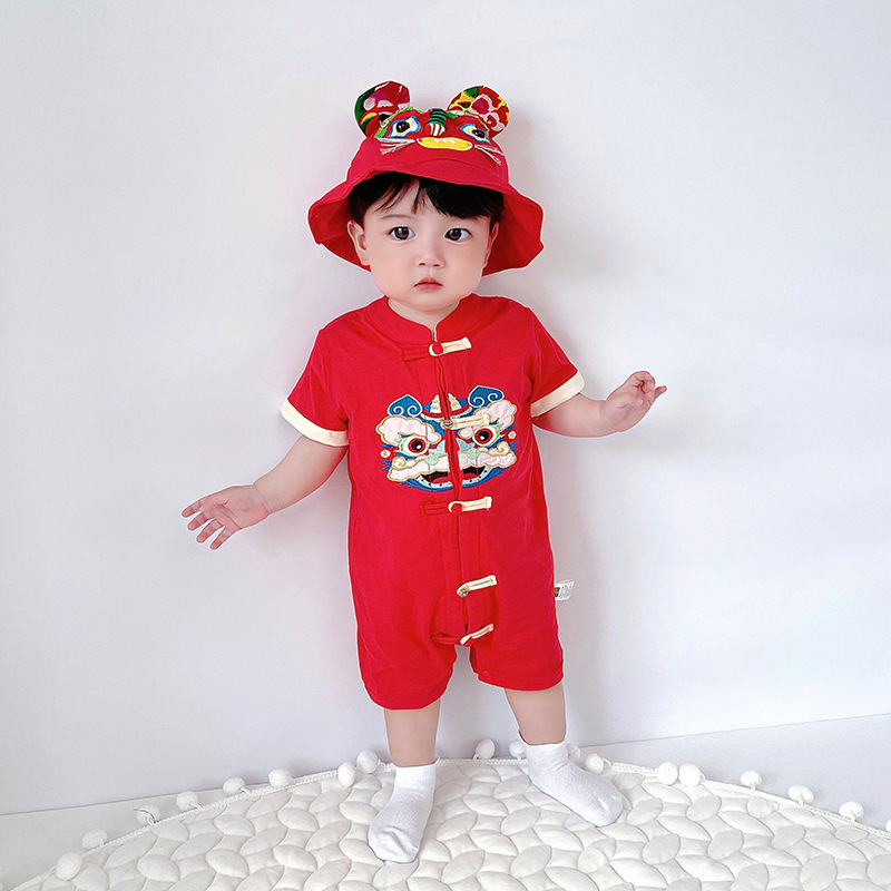 [SG Ready Stock] CSRB052 Toddler Baby Toddler Boys Traditional Lion Head Chinese CNY Red Romper [Little Gems]|,|