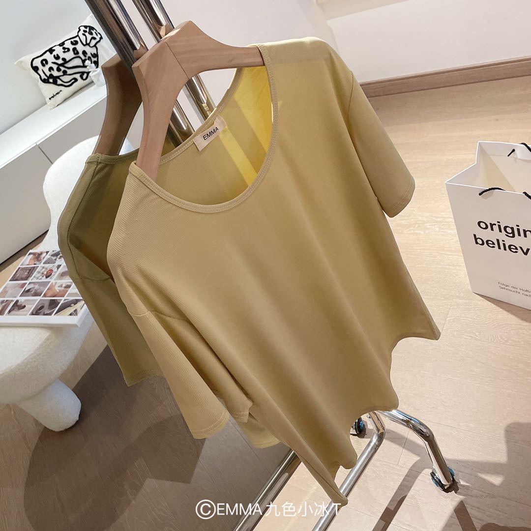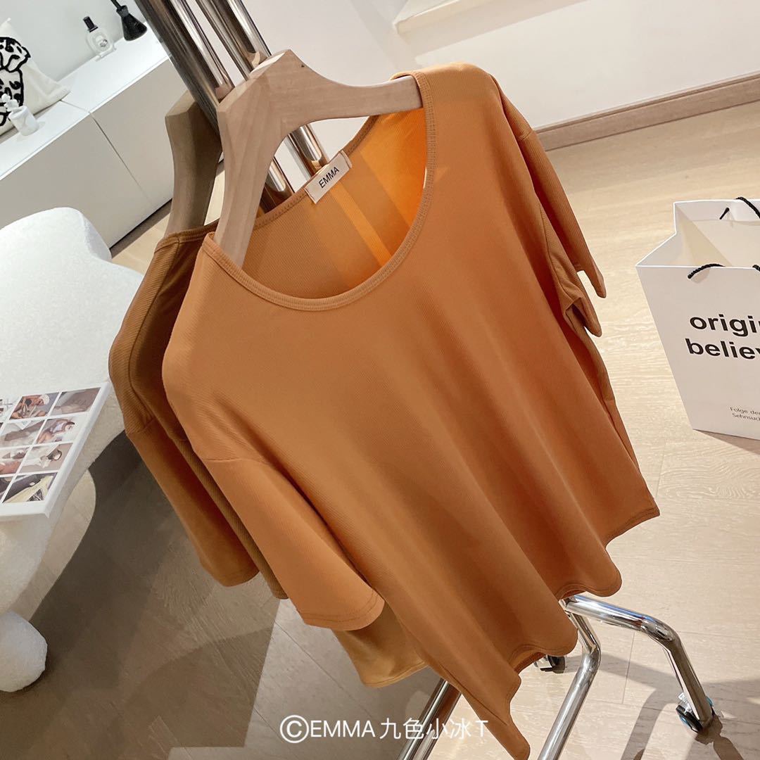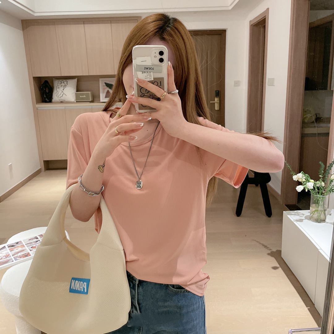 Pure Color Short sleeved Round Neck Women T Shirt Ice Silk Cool Free size Large size