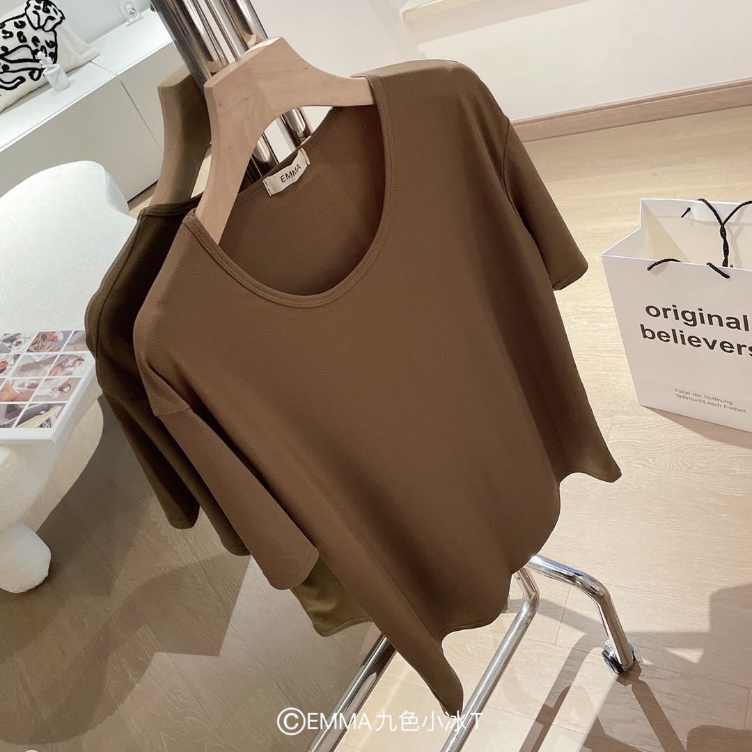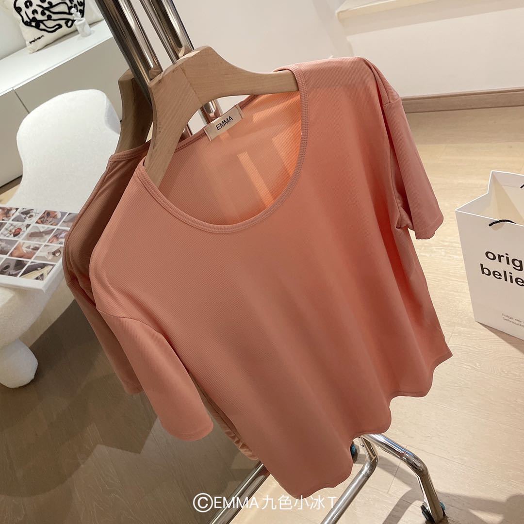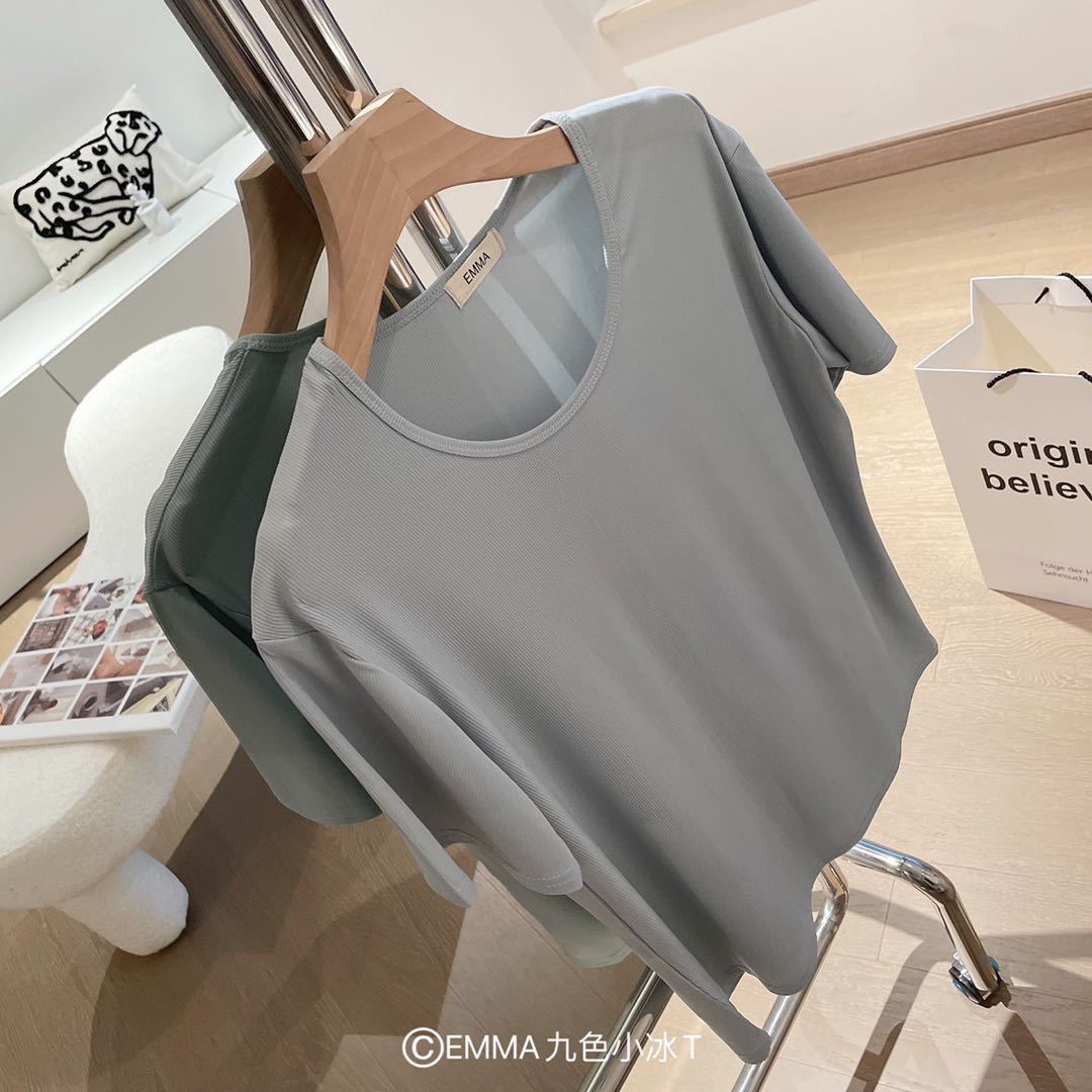 Pure Color Short sleeved Round Neck Women T Shirt Ice Silk Cool Free size Large size