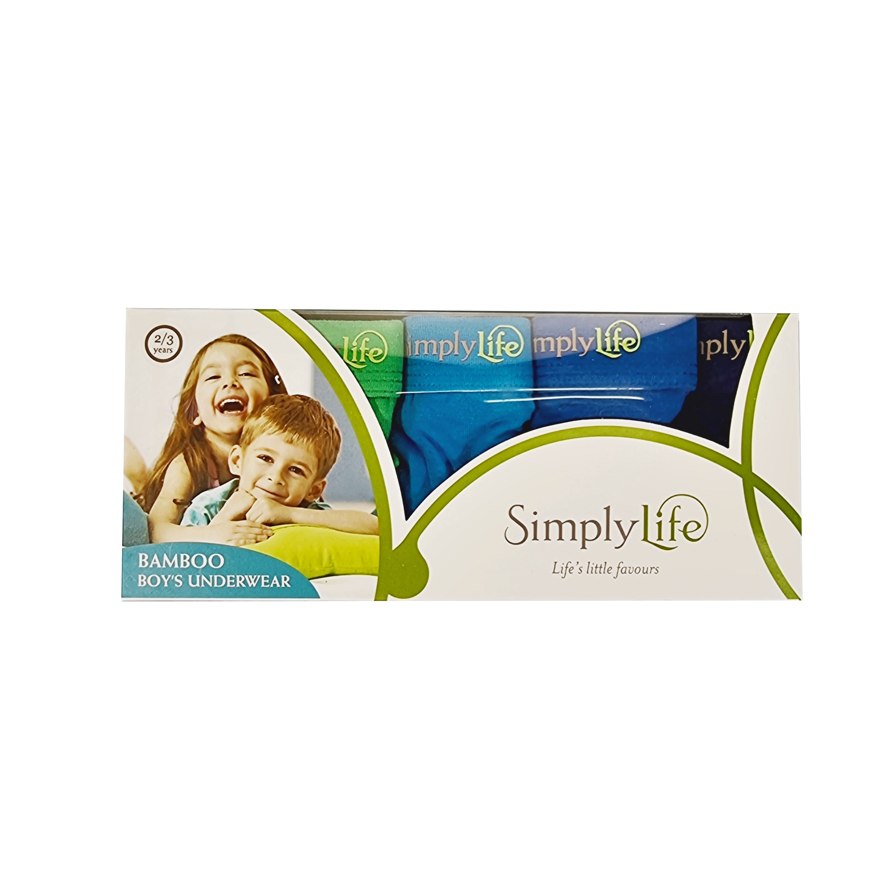 Simply Life Boys Briefs - 5 colours per set - 180 gsmThe naturally hypoallergenic bamboo fabric cares for your child's sensitive skin, keeping them happy and radiant! Perfect for the tropical and humid weather. Double stitched for durability with soft seams for greater comfort! Amazing Benefits of Bamboo ✔️ OEKO-TEX® Standard 100 Certified✔️ Hypoallergenic, Anti-fungal & Anti-bacterial✔️ Breathable & thermoregulating (cool in warm surroundings & warm in ✔️ colder temperatures)✔️ Wicks water four times faster than cotton & does not stick to skin✔️ Ultra soft & easy to care for[ Made from 95% Bamboo Viscose, 5% Spandex ]