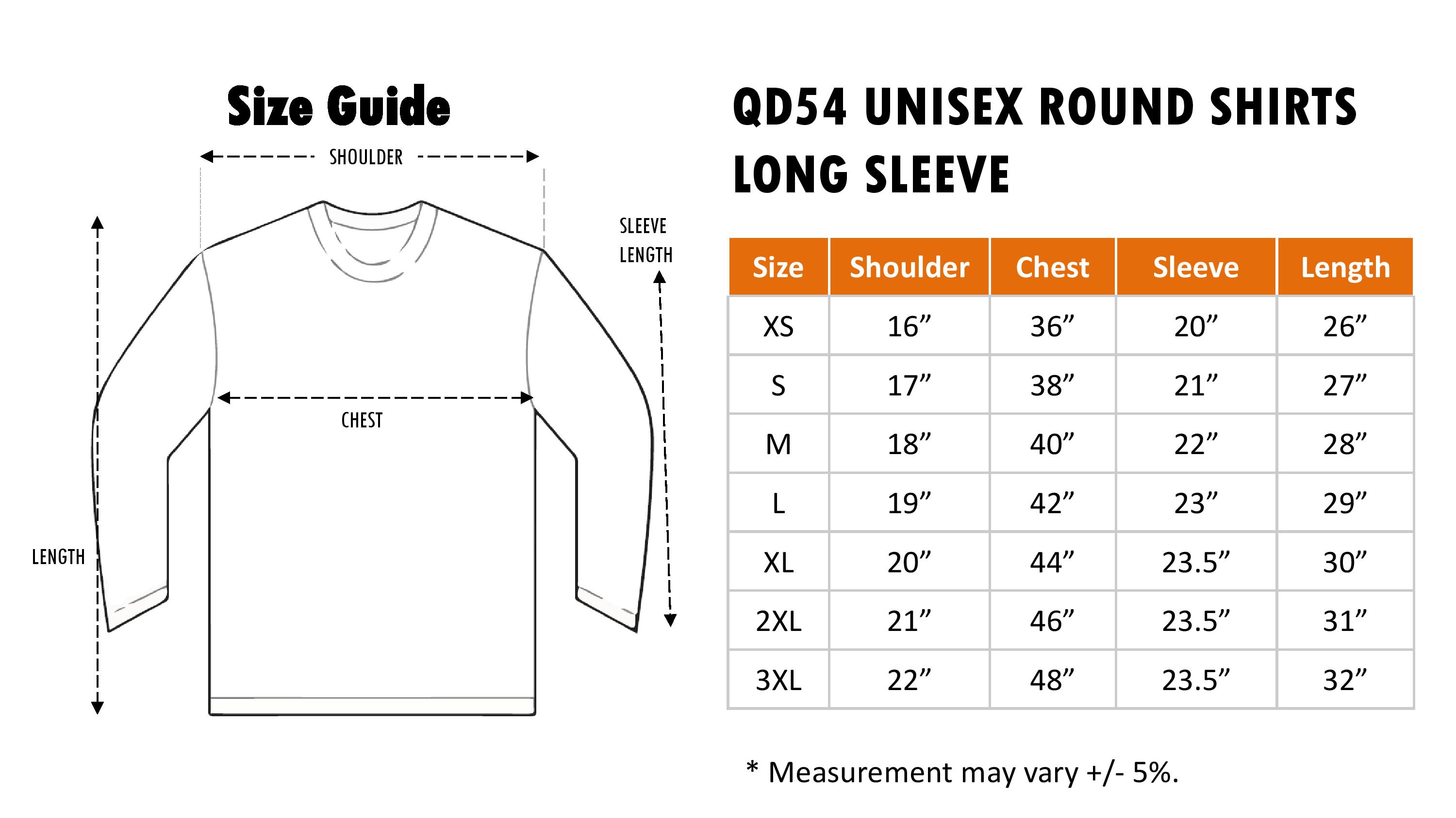 Please note size chart has -/+ 1inch as items made in batches, size chart provided by shirt supplier