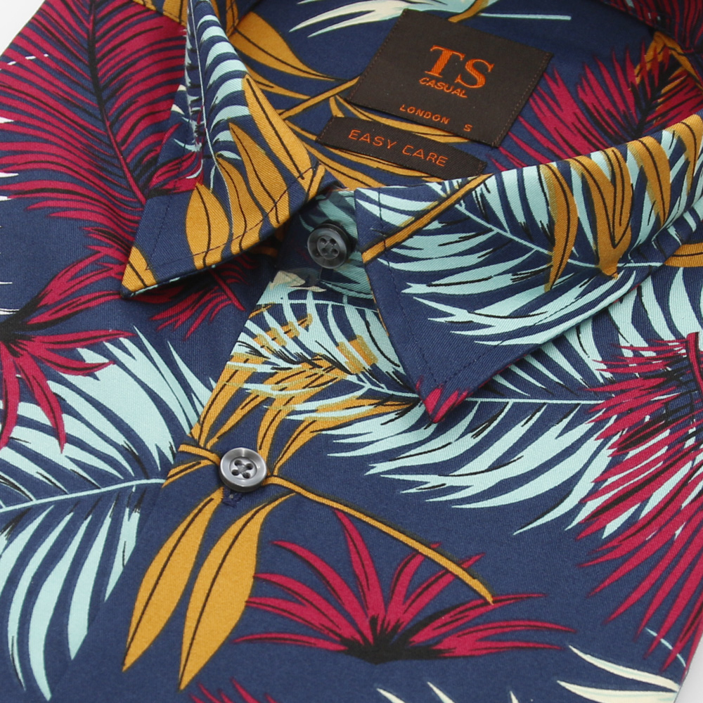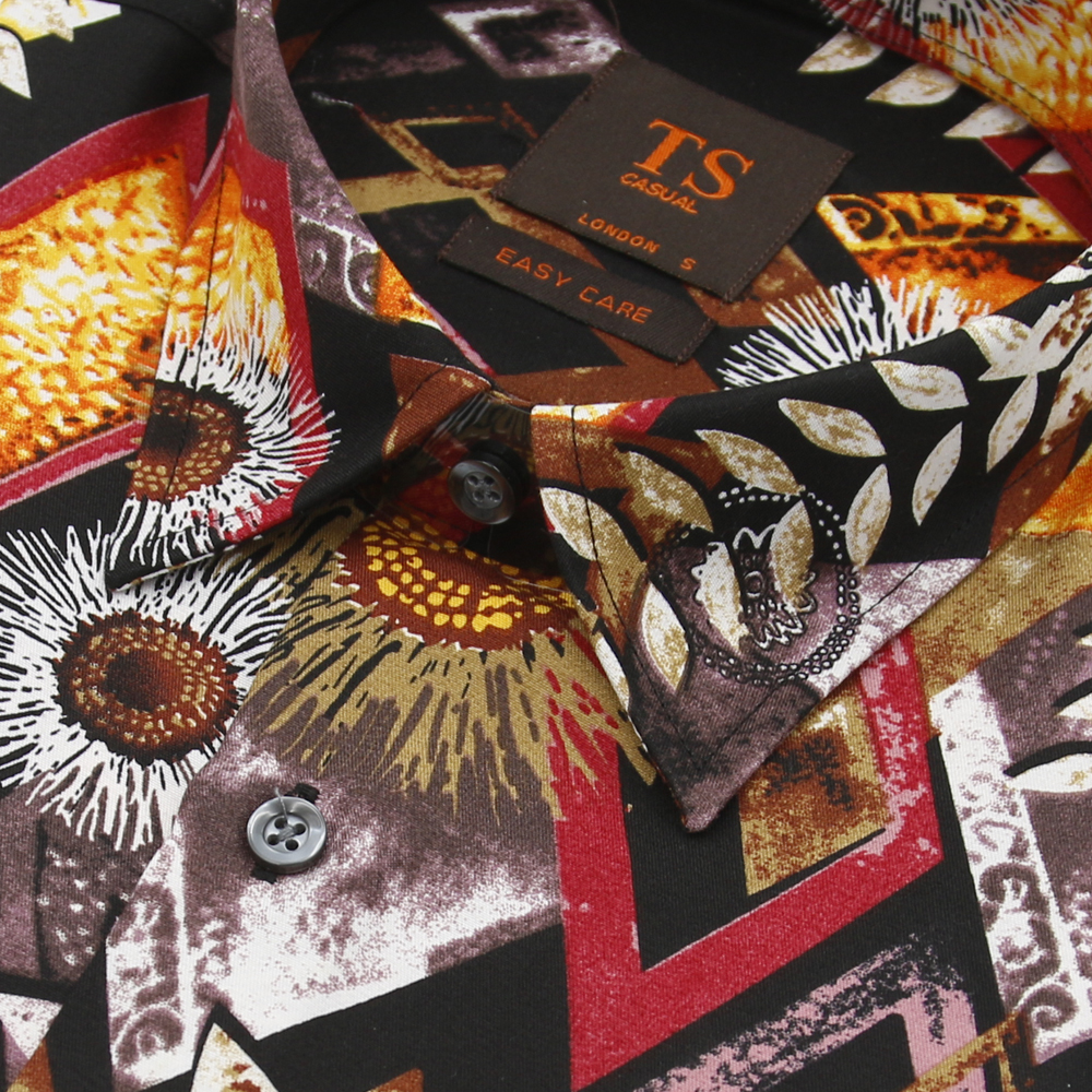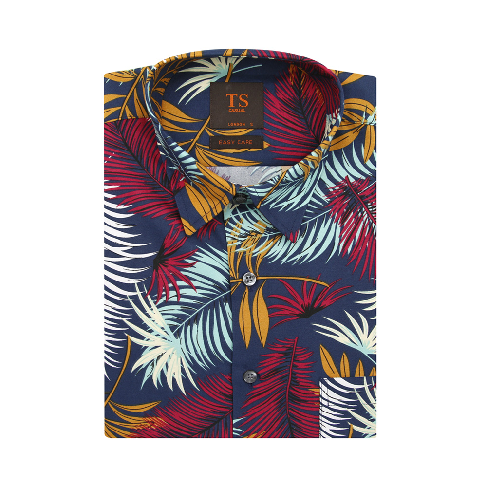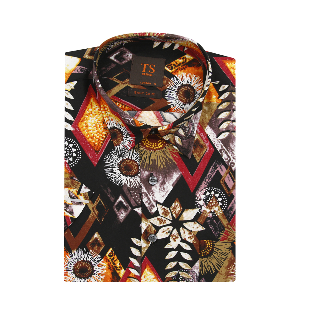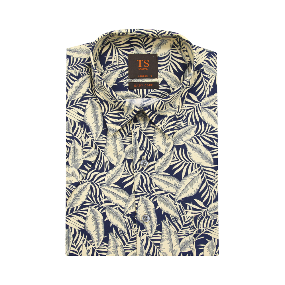 Thomas Smith Short-Sleeved Printed Shirts - Blue / Brown / Colorful / Yellow|,|